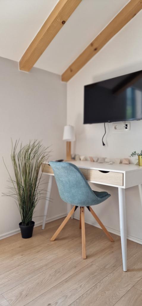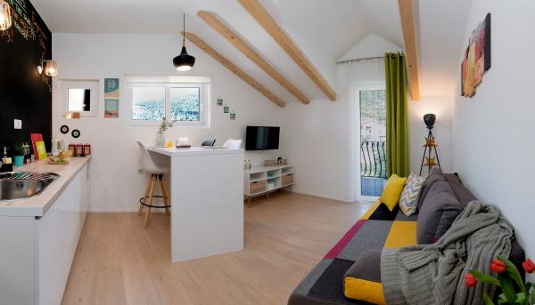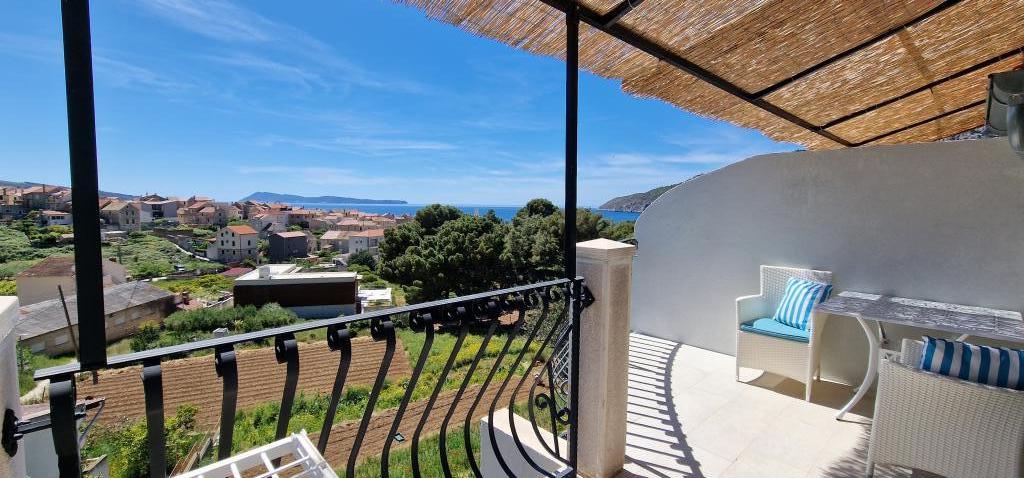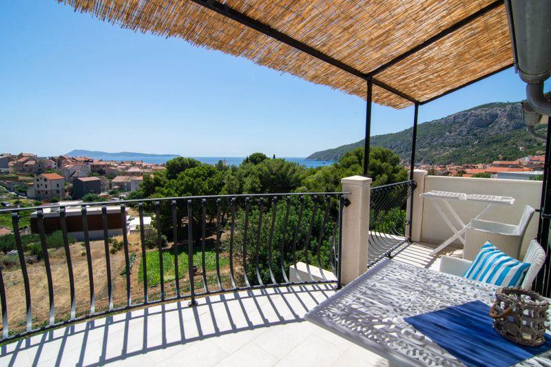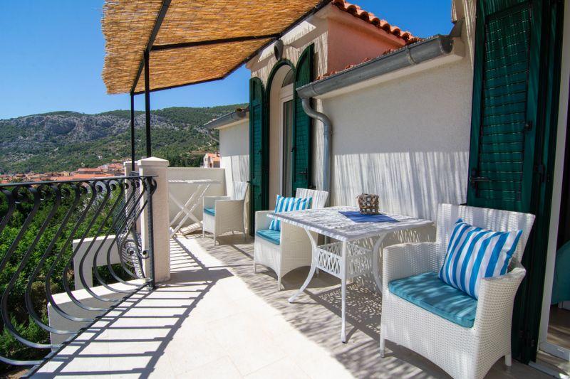 Ne glede na to, ali ste tukaj poslovno ali rekreativno, ste prišli na pravo mesto. Villa Batuda ponuja maksimum, po konkurenčnih cenah. Nahaja se v mirnem delu Komiže, le nekaj minut hoje od centra in bližnjih plaž. S terase se razprostira pogled na pristanišče Komi in obzorje, prihajajoče ladje, Biševo in strehe Komija. V visoki mansardi Vile Batuda se nahajajo 3 apartmaji, ki si delijo skupni hodnik. Vsak apartma je skrbno zasnovan tako, da imajo naši gostje vse, kar potrebujejo med bivanjem. * vsi apartmaji imajo zagotovljeno parkirno mesto pred hišo * nove, močne klimatske naprave * Android TV * hitri internet * hidromasažne prhe * ortopedske vzmetnice * pisalna miza * mini pralnica za skupno uporabo * dodatne brisače in ostale potrebščine so na voljo v skupni hodnik