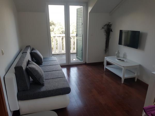 Prostoren apartma, ki se nahaja na podstrešju družinskega doma. Z lastnim balkonom s pogledom na morje ima tudi veliko teraso, ki je urejena za popoldanski počitek. Objekt se nahaja 40 metrov od morja, 600 metrov od nakupovalnega središča in 3 km od centra Korčule. Hiša je obkrožena z borovim gozdom, zelo miren značaj, primeren za počitnice.