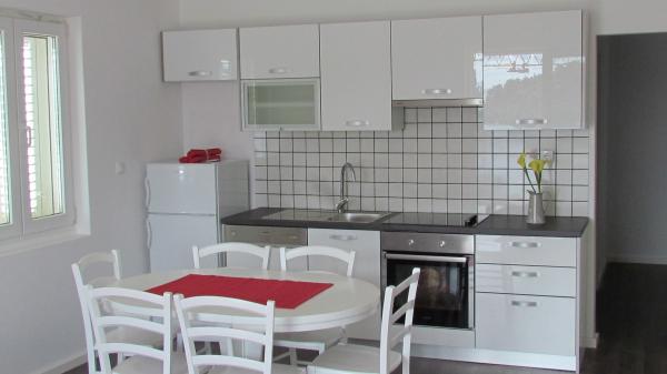 Turistična taksa je vključena v ceno.Dobrodošlica vključen v ceno. Domače živali so dovoljene na zahtevo za povračilo (8 EUR / dan) Mirno mesto z lepimi panoramskim pogledom na morje. Velike terase izpostavljena soncu ves dan. Za skupni žar. Stopil pot (55 stopenj) do apartmajev. Parkirišče ob hiši. Trgovina 7 km, restavracija 7 km, Peščena plaža 3 km, kamnita plaža 60 m