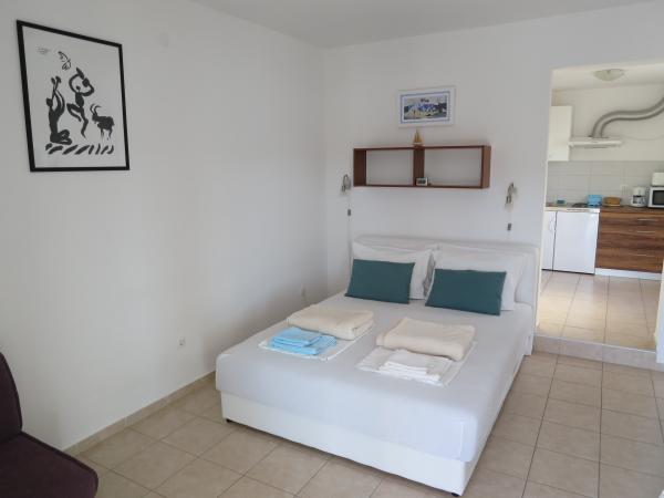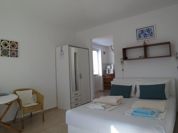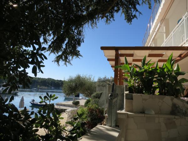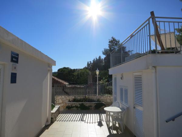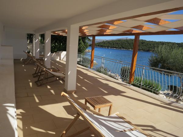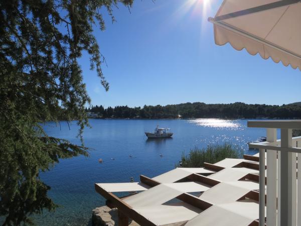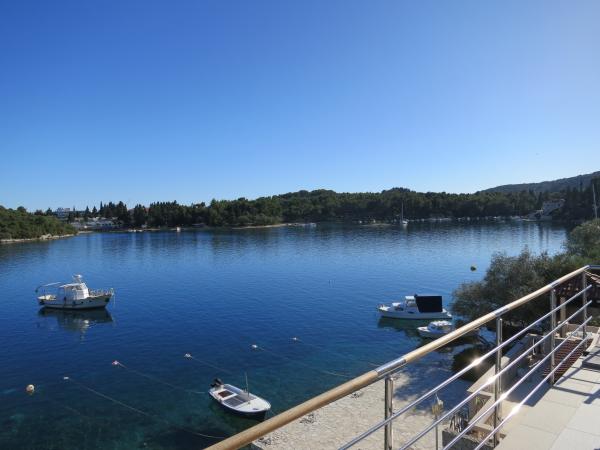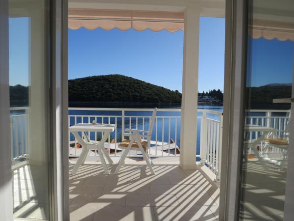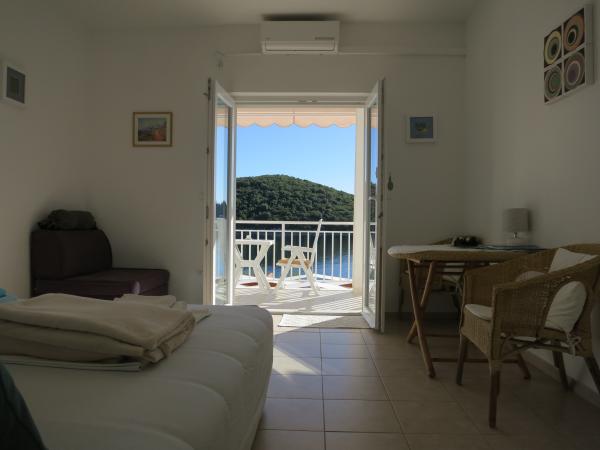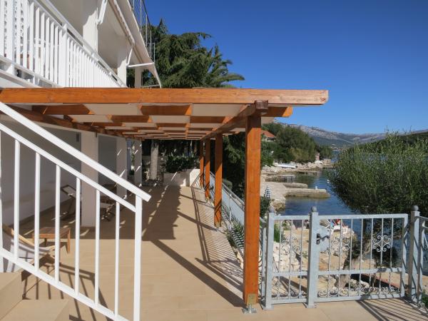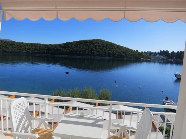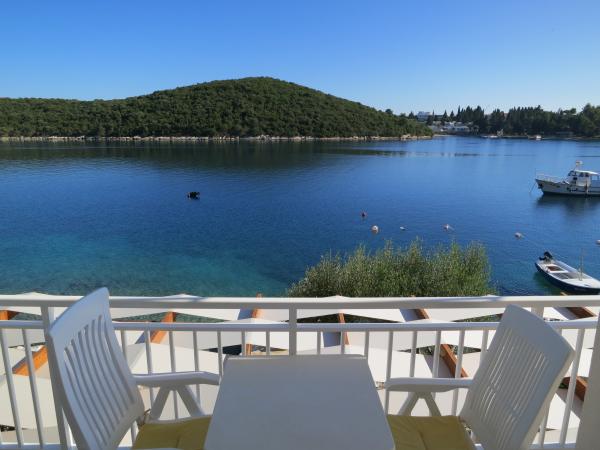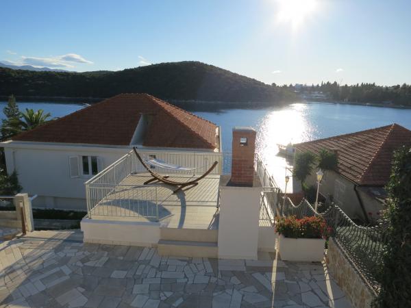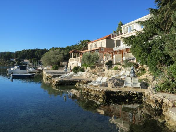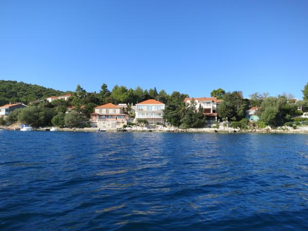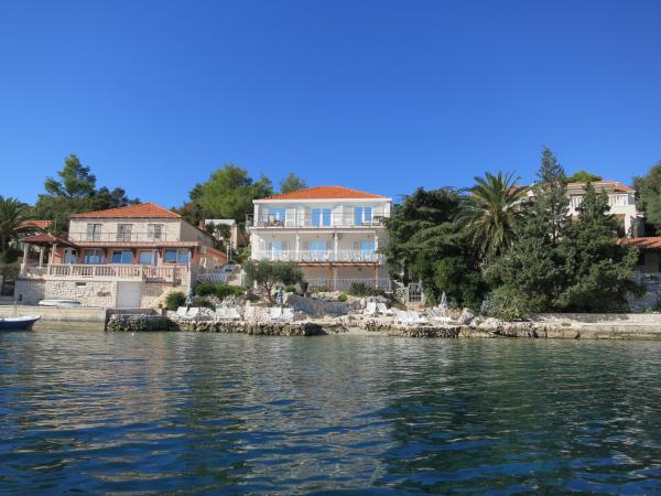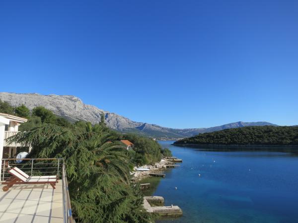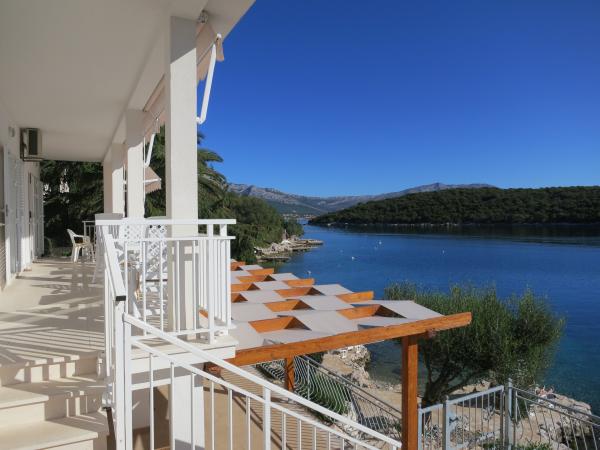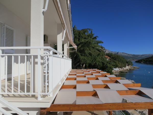 Hiša se nahaja tik ob morju (na eno linijo; 5 milijonov), z zasebno plažo (z brezplačnimi pridržane plaža stoli in senčniki) in privez, vse v mirni in prijetni soseski in okolje. Le 8 min. hoje do starega mestnega jedra, in le 2 min. od senci stoletne gozdni park Hober. 3 Popolnoma nova (2013-2015 g. ) Studio apartmaji za max. 3 osebe na enoto (2 plus 1). Vsak apartma ima svojo teraso, s pogledom na morje in polotok Pelješac. Vsi apartmaji so standardno opremljeni in klimatizirani, s kuhinjo in wc-jem, kot tudi brezžični dostop do interneta. Brezplačno privatno parkirišče rezervirano na dvorišču. Prosti žar in pokrov, kot tudi zadolževanje osnovno potapljaško opremo. Brezplačna kava, čaj in domače olivno olje. Obstajajo tudi 2 kolesa (m / ž) in športni kajak za najem