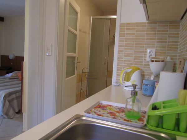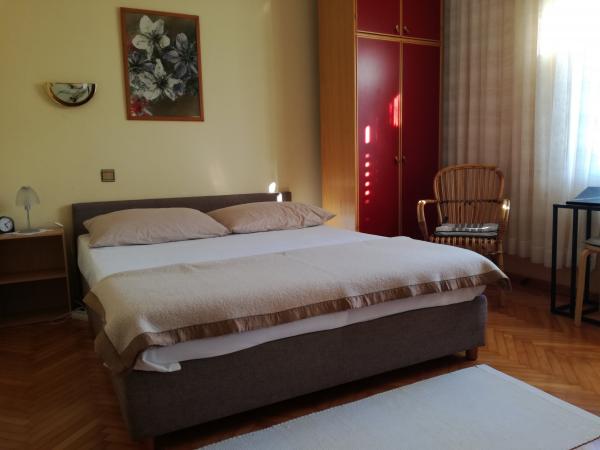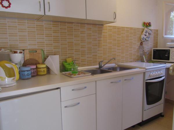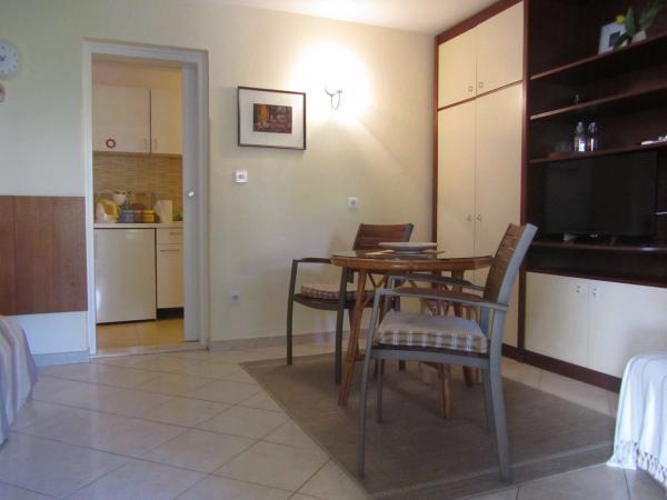Apartma se nahaja v mirnem družinskem področju Korčuli, v družinski hiši z lastnim vhodom, zasebno teraso s pogledom na vrt. V bližini so telovadnice in igrišča za tenis. Plaža je oddaljena 10 minut hoje, trgovina je približno 100 metrov, kar je dovolj za vsakodnevne potrebe, približno 700 m stran pa je večji nakupovalni center. Središče mesta je približno 20 minut hoje. Parkirišče je zagotovljeno. zasebno, zraven apartmaja. Stanovanje je v celoti opremljena z vsemi aparati, ki morda potrebujejo v Dopust štedilnik, hladilnik, mikrovalovna pečica, kavni avtomat, kuhalnik vode, kafetjera, opekač, likalnik, likalna deska, uporaba pralnega stroja, na zahtevo. Posteljnina in brisače so brezplačni. Wi-Fi je na voljo v celotni stavbi in brezplačno, preveč. TV je z ravnim zaslonom, satelitsko anteno.