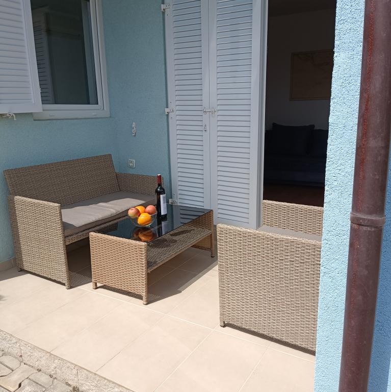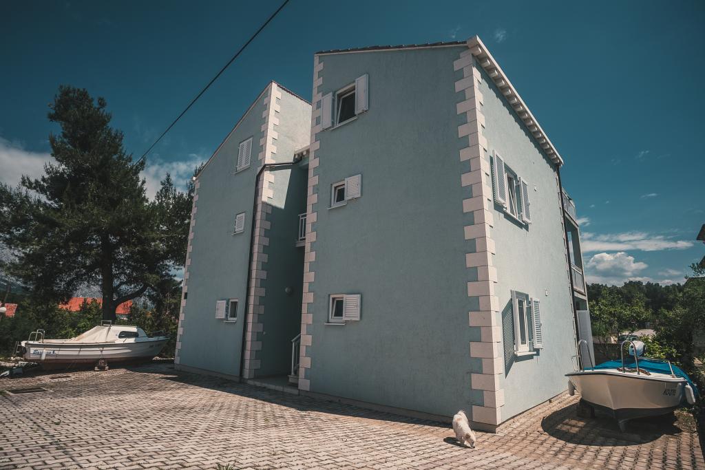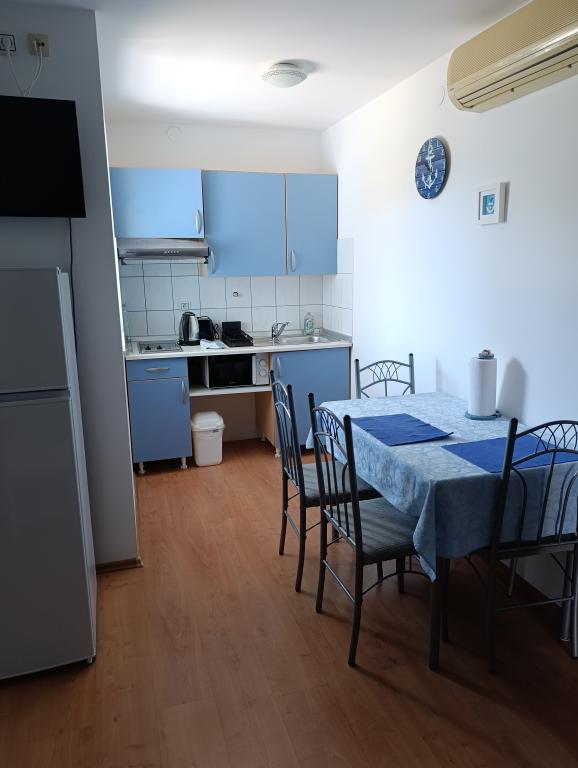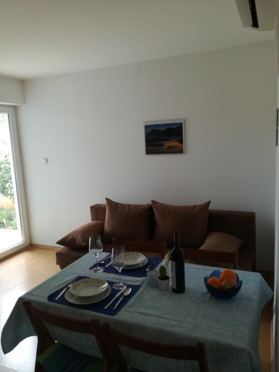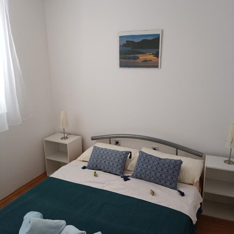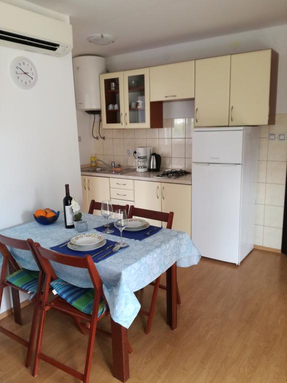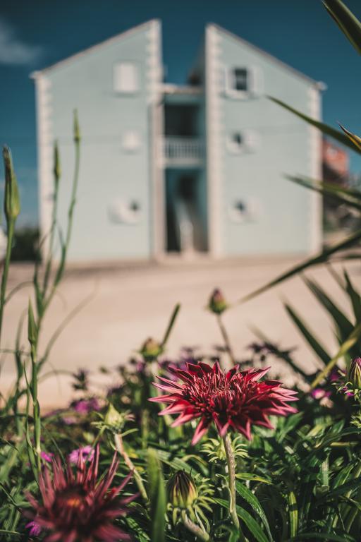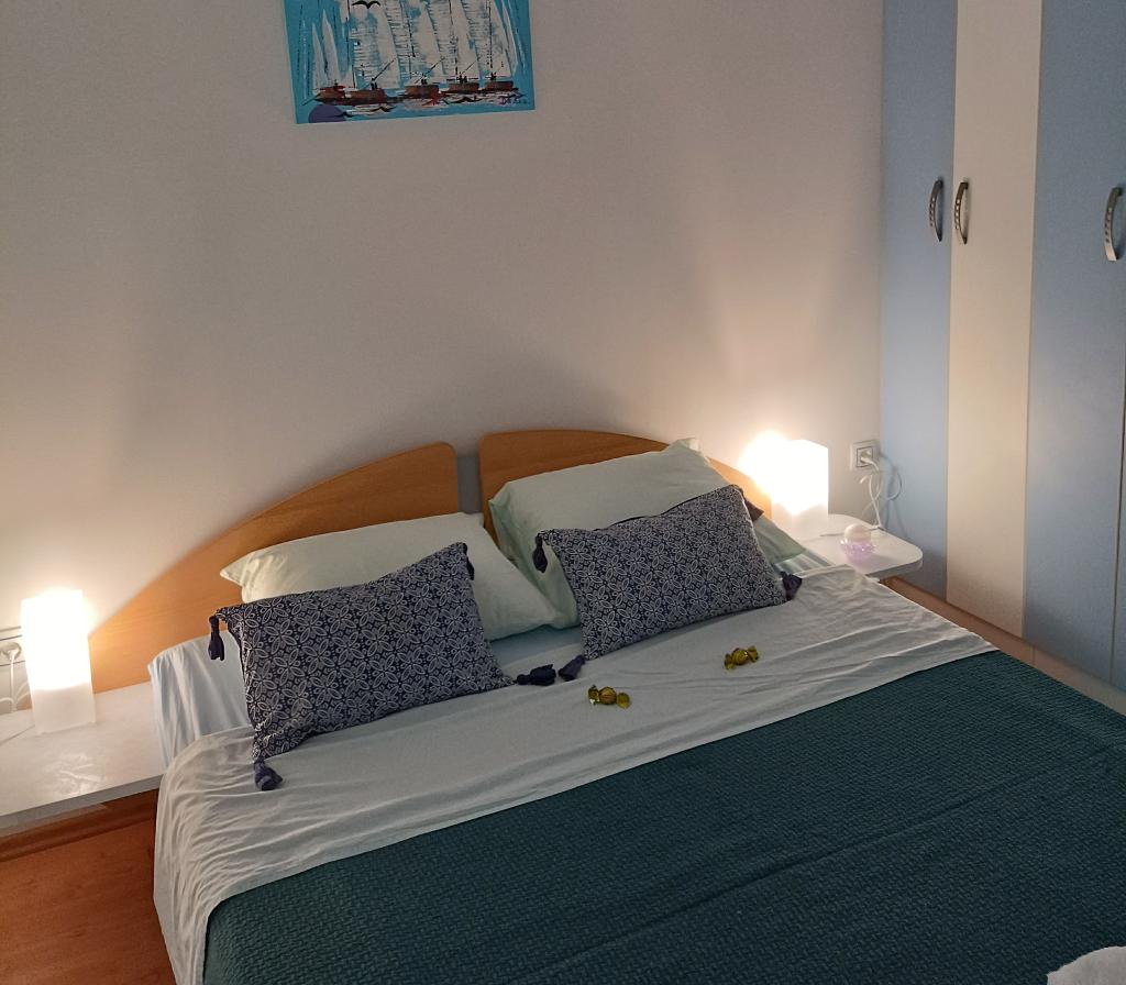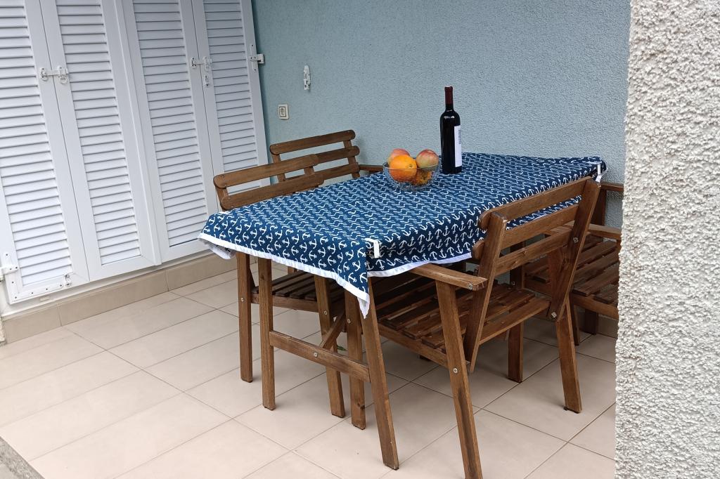 Apartmaji ***, TV/SAT, klima, balkon, ločena spalnica, dodatno ležišče v dnevni sobi, parkirno mesto, 10 min hoje do morja in plaže, trgovin in kavarn, 25 min lahkega sprehoda do starega mestnega jedra. Hiša se nahaja v mirnem delu mesta v bližini bazena Gojko Arneri, ki ima notranji bazen in telovadnico ter se lahko uporablja vse leto. Apartmaji z ločeno spalnico z zakonsko posteljo, dnevno sobo z dodatnim ležiščem, ki se lahko raztegne v enojno posteljo, kuhinjo v dnevni sobi z vsemi potrebnimi dodatki, kopalnico s tušem, popolnoma opremljeno, balkonom z mizo s štirimi stoli, parkirnim mestom pred hišo. Cena vključuje: končno čiščenje, parkiranje, Wi-Fi, klimatsko napravo, sušilec za lase, skupni žar, senčnik, turistično takso.