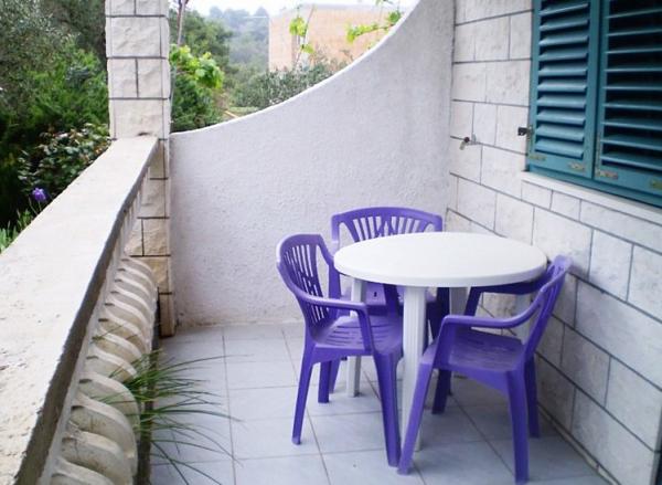 Apartmaji in sobe, 500 m od morja, prijetno in sproščeno vzdušje. Domača kuhinja (oljčno olje, vino, žganje ...) in oprema za žar. Brezplačen brezžični internet, klimatiziran, varovano parkirišče. Lep pogled na okoliško naravo. Namestitvene enote so opremljene s TV, hladilnikom. Za vse sobe velja enaka cena.