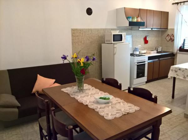 Popolnoma opremljen prostoren apartma v družinski hiši s pogledom na morje. Urejen vrt, varovano parkirišče, mirno družinsko okolje, terasa.