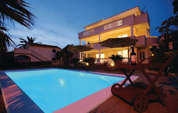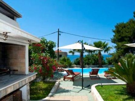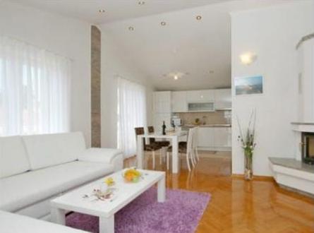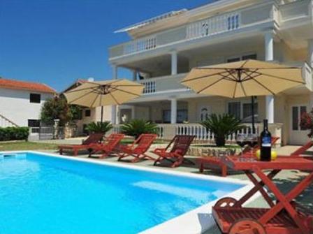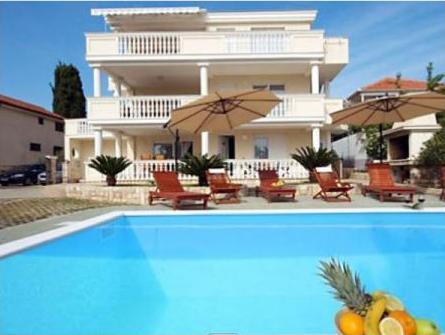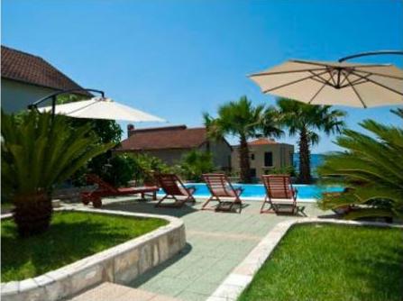 Luksuzna hiša s tremi udobno in lepo urejeni apartma, bazenom in tušem, ima sredozemski vrt in parkirišče. Hiša ima 3 apartmajev s 4 zvezdice od 92 m2, 114m2 in 93 m2. Apartmaji so udobne in moderno. Kuhinja je opremljena z vsemi aparati. SAT TV, Wi-Fi, vsak apartma ima dve spalnici, kopalnico s pralnim strojem, prostorno kuhinjo, blagavoanicu in dnevna soba z veliko teraso s pogledom na morje.