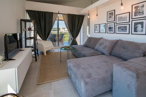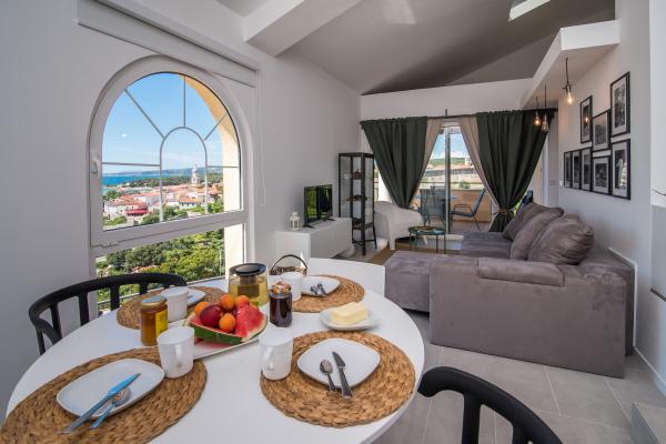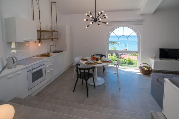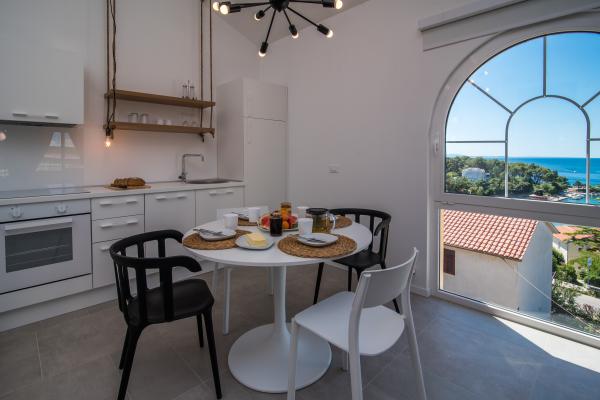 Apartma se nahaja 2 min hoje od plaže in staro mestno jedro. Zagotavlja eden najlepših pogledov na staro mestno jedro. Ima brezplačno parkirišče. Opremljen je s televizijo z ravnim zaslonom, klimo in brezplačnim WiFi. Kuhinja vključuje pomivalni stroj, kavo in tople vode, mikrovalovna pečica, pečica, razen zgoraj Apartma je opremljen s pralnim strojem in kopalnico in majhno WC.