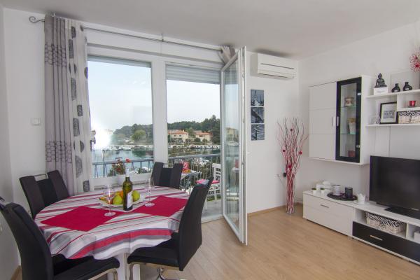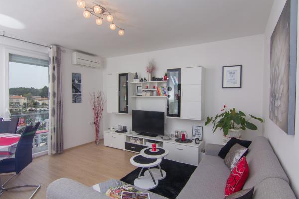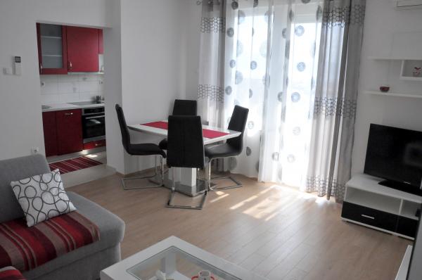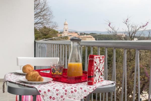 Popolnoma novo in moderno stanovanje v centru mesta, v drugem nadstropju stavbe, le 20 metrov od morja. Balkon ponuja čudovit razgled na Krk katedrala, sprehajališče in marina-port. Brezplačen internet in parkirišče. Restavracije, trgovine, ribe trg, trg, banka, lekarna in bencinska črpalka se nahaja le 100 metrov in plaže 200 metrov.