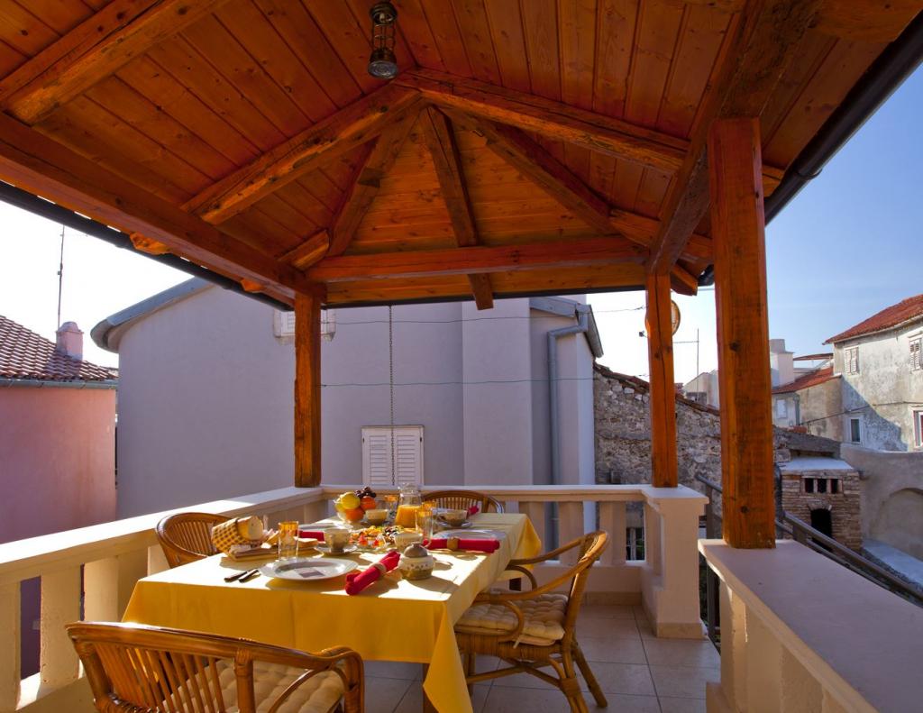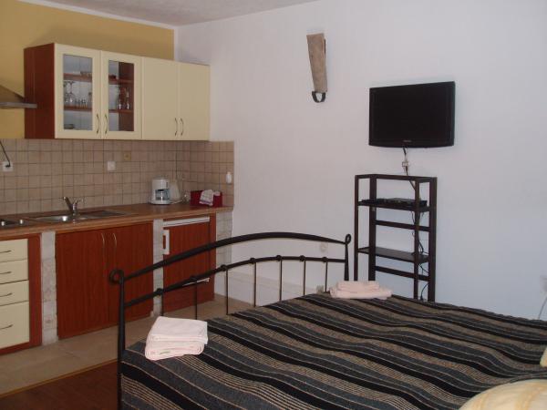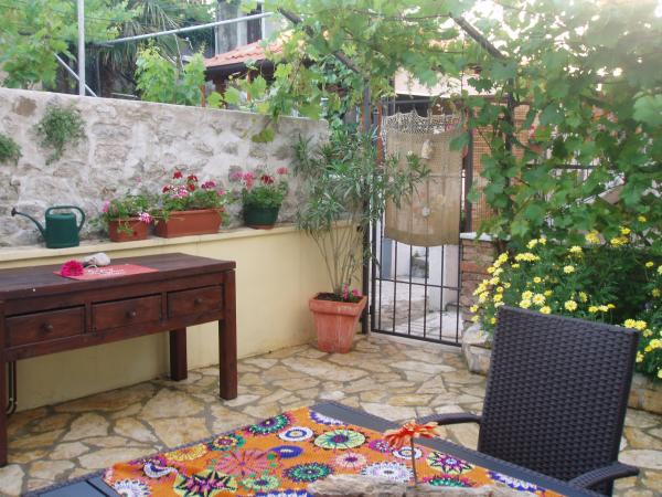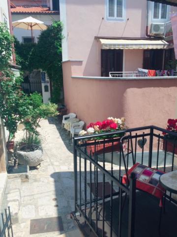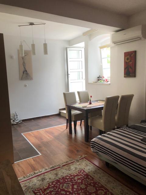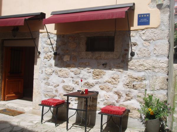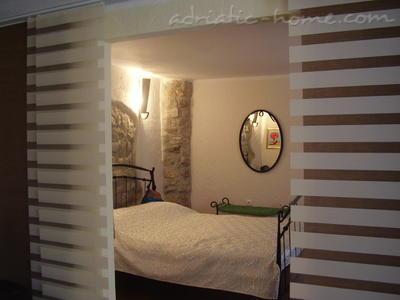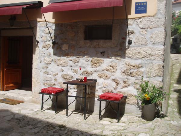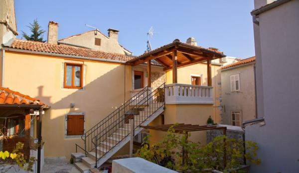 Krk center, urbana vila. Apartmaji s 4 zvezdicami, opremljeni v rustikalnem stilu, z moderno opremo, kuhinjo, klimo, TV sprejemnikom. Vila se nahaja v središču starega mestnega jedra in v mirnem delu ulice, le 70 metrov od plaže. Parkiranje v bližini na zasebnem parkirišču.