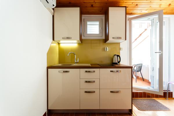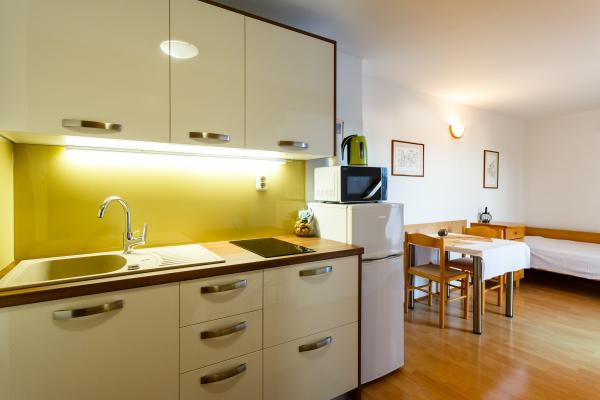 Preberite več Namestitvene enoteV ceno je vključeno: najem apartmaja in uporaba vseh aparatov, poraba električne energije, poraba vode, klima, televizija, brezžični internet, končno čiščenje, tedenska menjava vse posteljnine (rjuhe, prti, brisače, kuhinjske krpe), turistična taksa, eko taksa. V vsakem apartmaju je možno dodatno ležišče z doplačilom 9,00 eur/dan. Bivanje krajše od 4 noči se zaračuna 30% več. V glavni sezoni je apartma možen najem za 7 ali več dni. Ob potrditvi rezervacije je potrebno plačati akontacijo v višini 20% celotne cene. Vstop v apartma je ob 13. uri, odhod pa ob 10. uri.