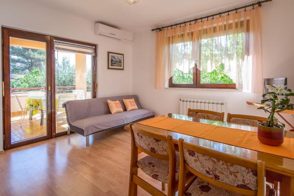 Hiša z apartmaji se nahaja v samem centru mesta Krk, v bližini vseh potrebnih vsebin. Lastnik živi v hiši in je vedno na voljo ter tekoče govori in piše italijansko, nemško in angleško. Kuhinje v vseh apartmajih so na novo urejene in popolnoma opremljene (pomivalni stroj, mikrovalovna pečica, toaster, aparat za kavo in kuhalnik vode). Stanovanju pripada tudi parkirno mesto. Pred hišo je skupni žar in miza kot prostor za druženje. Hišni ljubljenčki niso dovoljeni!