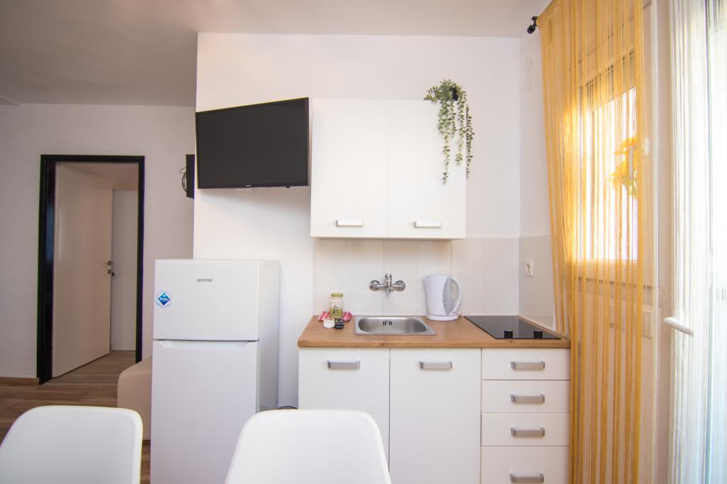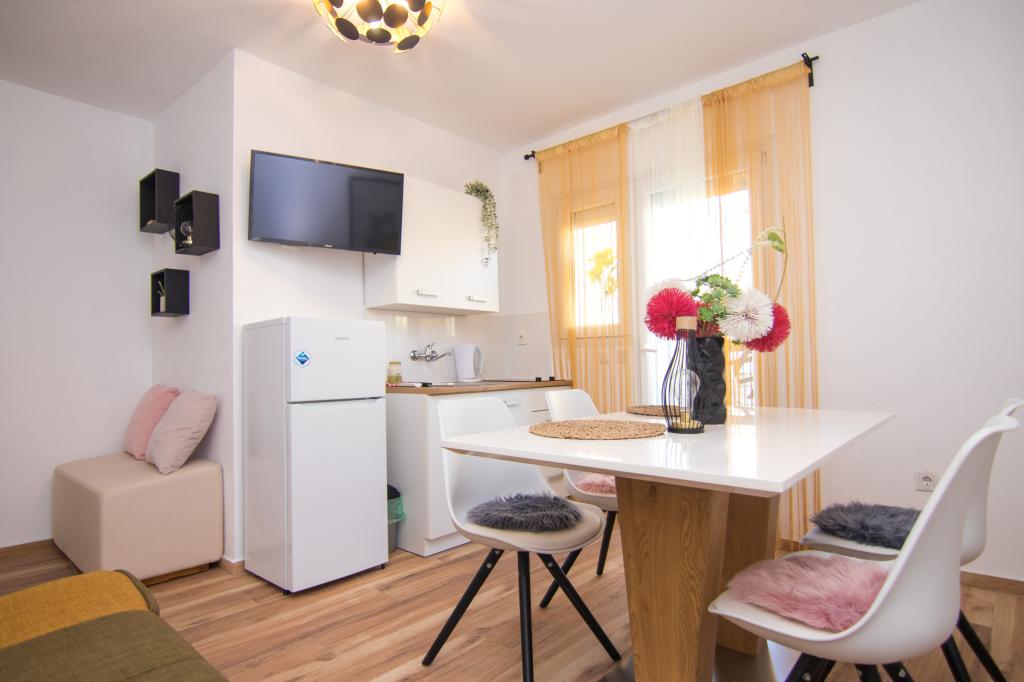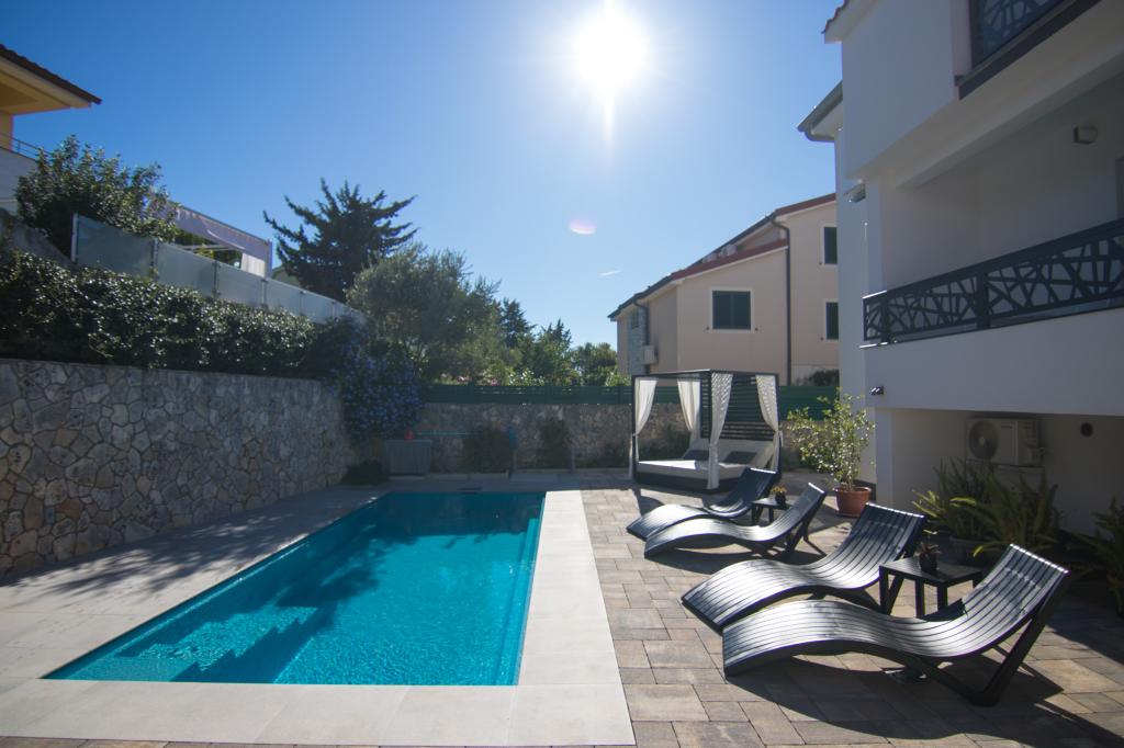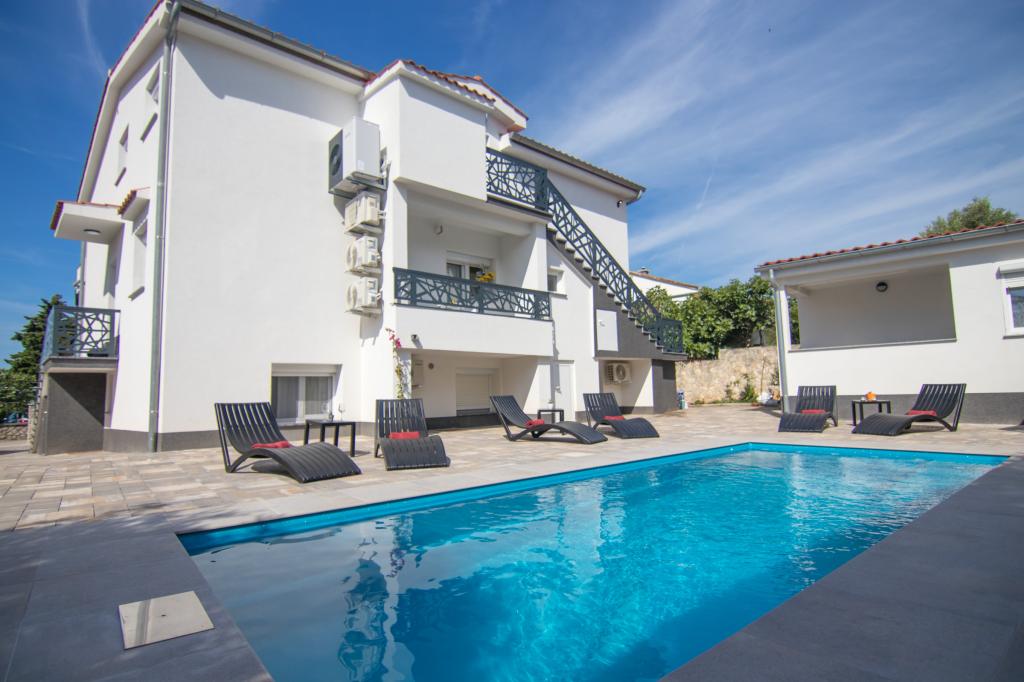 Ta čudovita nepremičnina se nahaja na odlični lokaciji, le 400 metrov od plaže in približno 500 metrov od vhoda v staro mestno jedro Krke, zaradi česar je idealna izbira za goste, ki želijo uživati v kombinaciji morja, zgodovine in mestnega vzdušja. Nepremičnina ponuja fantastičen ogrevan bazen s prostorom za sončenje, idealen za sprostitev in uživanje v dnevu. Nekatere enote ponujajo čudovit razgled na morje in prostorne terase, druge pa imajo balkone ali se nahajajo tik ob bazenu, zaradi česar so idealne za goste, ki želijo biti blizu družbenih storitev. Vse enote imajo zasebno parkirišče, satelitske programe, brezplačen internet, električni grelnik vode in aparat za filter kavo, kar gostom zagotavlja udobno in praktično bivanje.