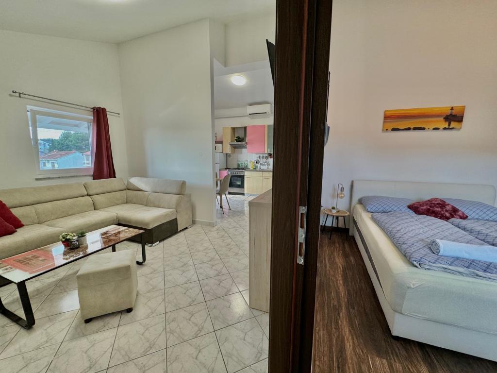 Hiša se nahaja na zelo ugodni lokaciji, v mirni soseski, nekaj minut hoje stran od plaže in deset minut hoje do centra mesta. Objekt sestavlja 5 apartmajev. Trije izmed njih so studii za do 2 osebi, en apartma za do 3 osebe in 75 kvadratnih metrov velik apartma za do 5 oseb. Vsak apartma ima popolnoma opremljeno kuhinjo, lep balkon ali teraso, zaseben vhod in varovano parkirišče. Na voljo je skupni vrt z opremo za peko na žaru. ***Hišni ljubljenčki so dobrodošli ob predhodni najavi in doplačilu 12 eur na dan (plačilo na licu mesta).