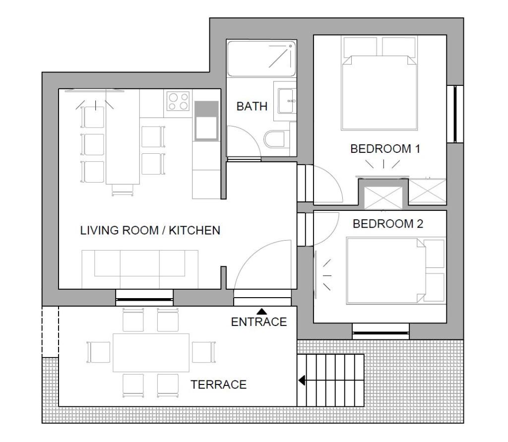 Apartma za dve osebi, možnost dveh dodatnih ležišč (29 m2)