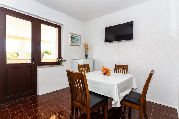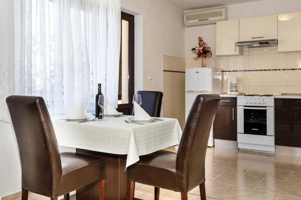 Novo opremljeni apartmaji v družinski hiši na mirni lokaciji Krk. Stran od centra mesta in plaže je približno 8 min hoje, 5 min od najbližje restavracije. Veliko dvorišče s parkiriščem za vsako od treh apartmajev, brez WiFi in žar na zahtevo. Vsak apartma ima kabelsko LCD TV, mreže proti komarjem na oknih, terasa z mizo in stoli, popolnoma opremljeno kuhinjo s hladilnikom, kavni avtomat, kuhalnik vode, likalnik in sušilnik za lase. Posteljnina in brisače so na voljo, kot tudi čistilna sredstva. Prijazni gostitelji so vedno na voljo svojim gostom, in so pripravljeni izpolniti!