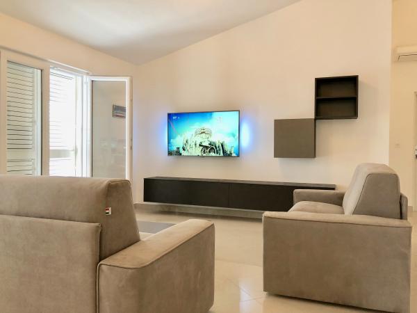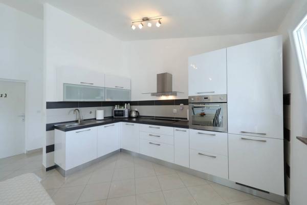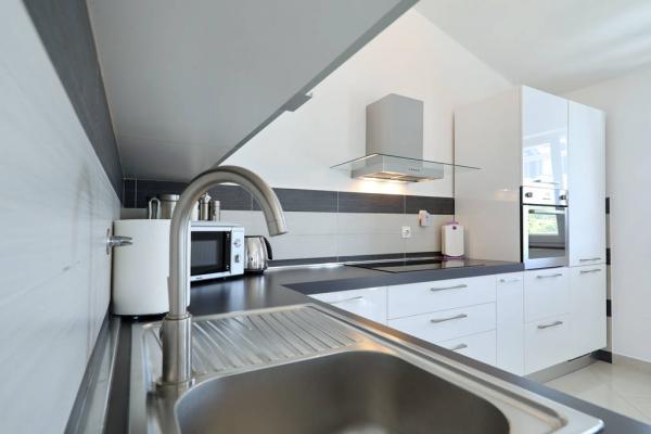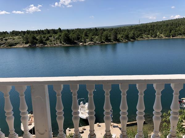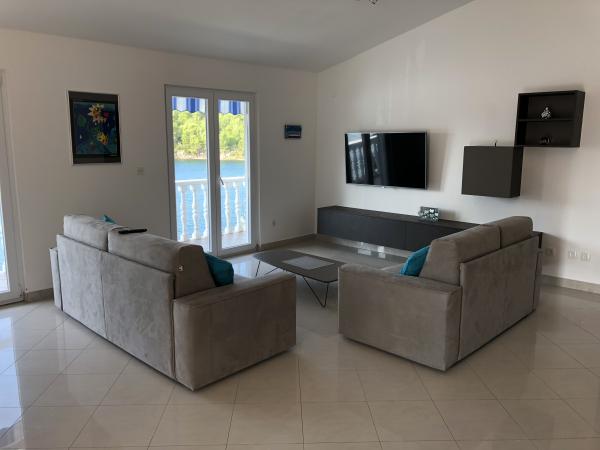 Popolnoma opremljen apartma z 120m2 s pogledom na morje v 1. nadstropju, lepo in udobno pohištvo: živijo / soba 50m2 jedilnico, satelitsko televizijo, internet, klima, 4 spalnice, kuhinjo (4 kuhalne plošče, pečica, hladilnik), kopalnica s tuš kabino in WC, WC, balkon, žar s teraso ... Stanovanje se nahaja v prvi vrsti, tj. Na morju nad plažo in ima svojo možnost priveza čolnov ... Zunanji tuš. Parkirni prostor. Trgovina 400 m, peščena plaža 200 m, kamnita plaža 20 m. Številni izleti ponuditi ...