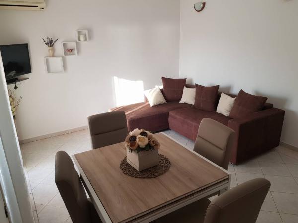 Oba apartmaja smo bivali v juniju 2014 namestitev je čist in udoben. Lastniki so zelo prijazni ljudje, ki so okoli vas, vsak dan za nego, če je vse v redu. Fantastic skoraj vsak dan preseneti - iz sladkih krofov, nad kozico z okusno večerjo, ki so jih lastniki pripravili za nas. Nastanitev se nahaja le nekaj metrov od plaže, ki je primerna za otroke. Idealna za počitnice za starše in otroke, v mirnem okolju. Toplo jo priporočam vsem!