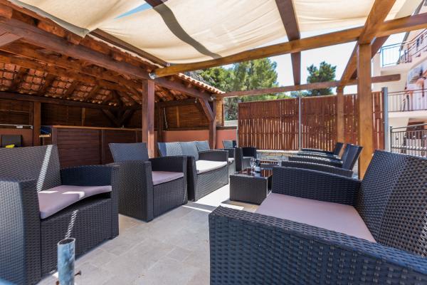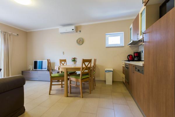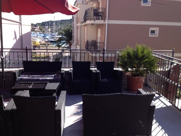 Nova stanovanja v Kukljica, ki se nahaja v marini, na sprehajališča Lungo-mare. 5 minut hoje do centra mesta in 5 minut hoje do plaže, Zelena Punta. Objekt ima 6 apartmajev, 2 spalnici in 4-sobno. Vsak apartma ima ters s pogledom na marino Kukljica. Apartmaji so opremljeni, vodil tv, satelit, klimatska naprava, mikrovalovna pečica, pomivalni stroj, aparat za kavo, itd .. Z odlično restavracijo tako da, ko se lahko rezervacije bogatim zahtevo za zajtrk in večerjo. (HB)