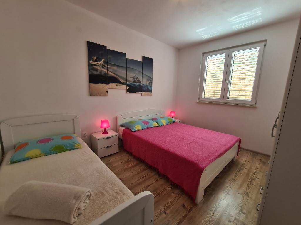 Nove, udobne in popolnoma opremljene apartmaje v mirnem delu otoka, Kustići. Nahaja približno 150m od morja, v drugi vrsti hiši. Idealen za mirne počitnice z družino. V bližini so številne peščene plaže, ki vam bo dala nepozabne počitnice. Ponujamo vam apartmaje 5 1 in 3 1. Vsi apartmaji imajo TV, klima, wi fi (free). Vsak apartma ima svojo teraso. Parkirno mesto. Imamo možnost povezave z ladjo.