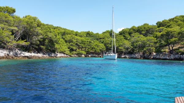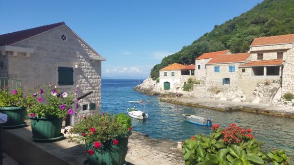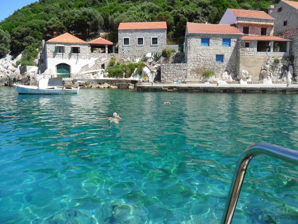 Apartmaji Simic se nahaja na mirni, atraktivni zaliv pristanišče na 10 metrov od morja. Zadaj apartmaja 2 + 1 je terasa na vrtu in ločen izhod na stopnicah do morja. Na 5 metrov od morja, je velika terasa, na voljo tako za stanovanja. Opremljen je z ležalniki, mize in stoli, dežniki in zunanji tuš. Na voljo je tudi zunanji žar, privez in skupno parkiranje na 15 metrov od hiše.
