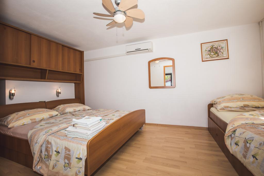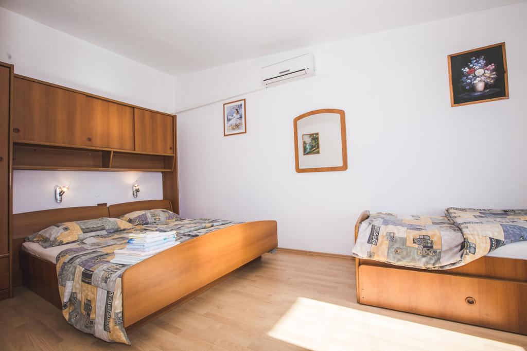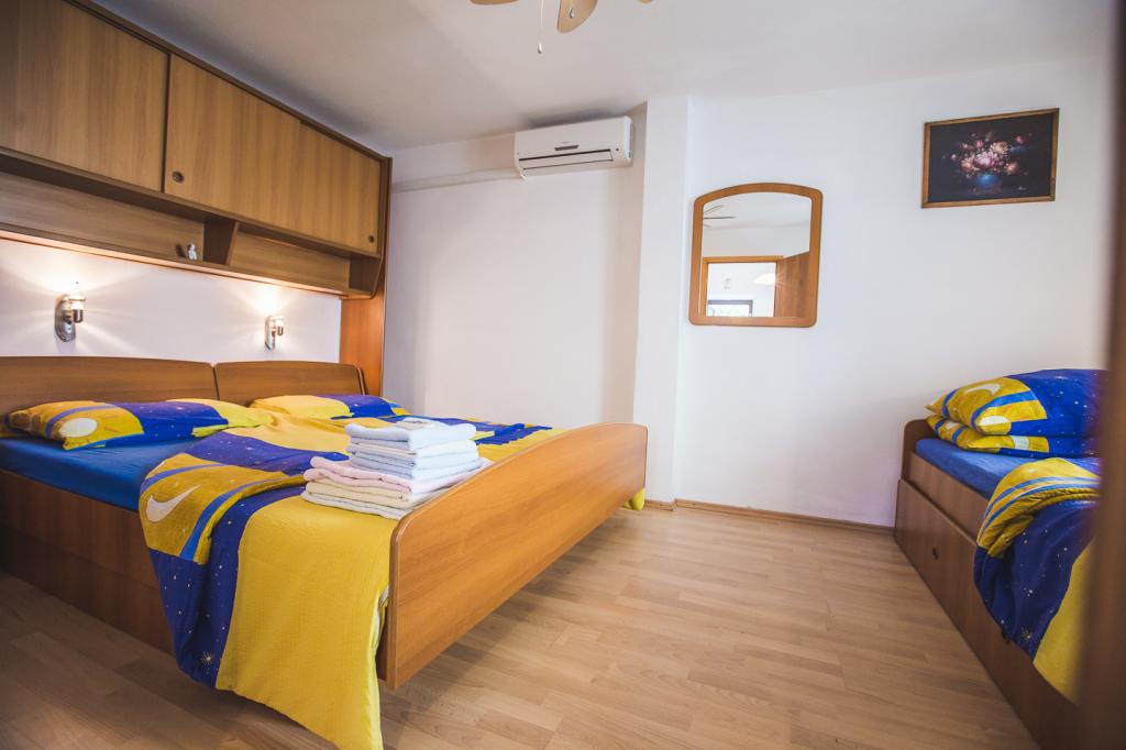 Apartmaji Jug - Lopar Dobrodošli v apartmajih Jug! Lopar, peščeni raj! Naši družinski apartmaji se nahajajo v Loparju na otoku Rab (Hrvaška). Tukaj lahko uživate v vseh prednostih otoka, bogati turistični ponudbi ali kulturnih in umetniških znamenitostih. Lopar ima 22 čudovitih peščenih plaž, ki so idealne za vse starostne skupine. Rajska plaža je najbolj znana plaža v Loparju in je še posebej primerna za družine z majhnimi otroki. Znane so tudi plaže za nudiste, kot so plaža Sahara, plaža Ciganka itd. Lopar je bogat z naravnimi danostmi, bogato preteklostjo s tradicijo in zgodovinsko dediščino, ki so osnova turistične dejavnosti. Uživali boste lahko v različnih gastronomskih dobrotah, pripravljenih na tradicionalen način! Le 500 m stran od znamenite rajske plaže in prvih restavracij, idealna pozicija za vaš letni dopust. Na mirni lokaciji, stran od gneče, boste uživali na svežem zraku s pogledom na morje in zelenje. Apartmaji Jug so od ambulante in pošte oddaljeni 700 m, od trgovine 500 m, od centra Loparja in športnih in zabavnih vsebin pa 600 m. Vsem gostom je zagotovljeno parkirno mesto na pokritem parkirišču, gostje pa lahko uporabljajo tudi zunanji žar in kotliček. Tam boste na terasi in kamniti klopci lahko pripravljali različne mesne in ribje jedi ter tako razveselili in zbrali svoje najdražje. Apartmaji so klimatizirani, z brezplačnim dostopom do interneta in SAT TV. Obiščite nas in preživite idealne počitnice v apartmajih Jug! Veselimo se vašega obiska!
