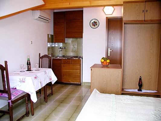 Stanovanje se nahaja v pritličju in je primeren za 3 osebe (2 +1), medtem ko je studio ločen od hiše, primerno za 2 osebi. Objekt se nahaja ob morju. . Lep pogled na morje. Možnost zasebnega privez čolna (dodatne). Objekt se nahaja na mirni lokaciji tik ob promenadi, plaža je 5 minut hoje.