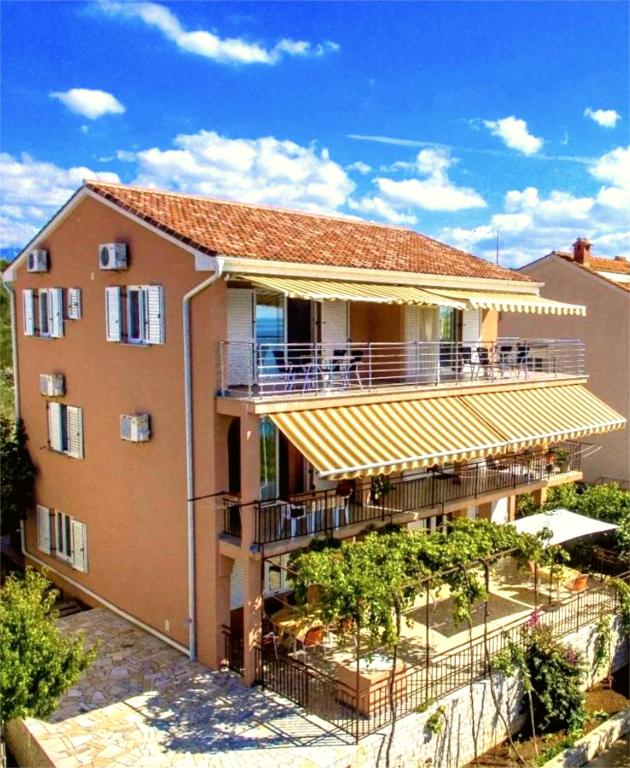 Apartmaji se nahajajo tik ob morju s pogledom na otoka Cres in Lošinj, idealni za miren in sproščujoč dopust brez večjega hrupa in vrveža. Popolnoma so opremljeni. Center mesta je oddaljen le 300 metrov, kjer najdete trgovino, več restavracij, kavarno in trgovino s sadjem in zelenjavo, bankomat. Peščena plaža za otroke je oddaljena 200 metrov. Pred hišo je majhna zelena oaza z bogatim zelenjavnim vrtom, kjer se lahko gostje sami oskrbijo. Apartmaji imajo lastno parkirišče, zunanjo teraso za žar v pritličju, ki jo lahko uporabljate, in če želite nekaj več, so vam gostitelji pripravljeni urediti lastnega kuharja. Hrup ni dovoljen pred 9. uro zjutraj in po 23. uri. Lun, ki se nahaja na severnem delu otoka Pag, bogatega s tisočletnimi oljkami, je edinstveno območje v tem delu Sredozemlja. Na površini 400 hektarjev se razprostira več kot 80.000 oljk. Lun se nahaja v bližini Novalje, v bližini pa so tudi otoki Rab, Lošinj, Cres, Silba in 5 narodnih parkov. Dnevna izletniška ladja z Rabom,