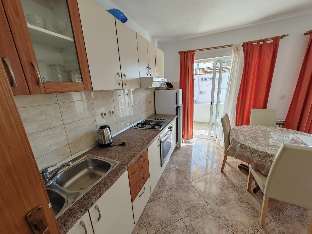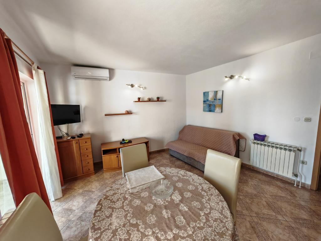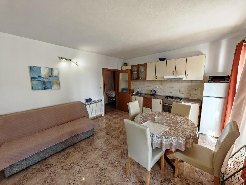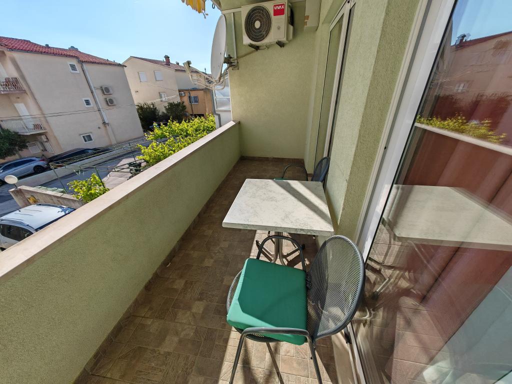 Apartma v prvem nadstropju apartmajske hiše v neposredni bližini plaže, oddaljen približno 50 metrov. Velik balkon s pogledom na morje, brezplačen wi-fi, brezplačno parkirno mesto pred stavbo. Apartma je primeren za 3 odrasle osebe, par z enim ali dvema majhnima otrokoma. Odlična lokacija, dobro opremljeno in urejeno.
