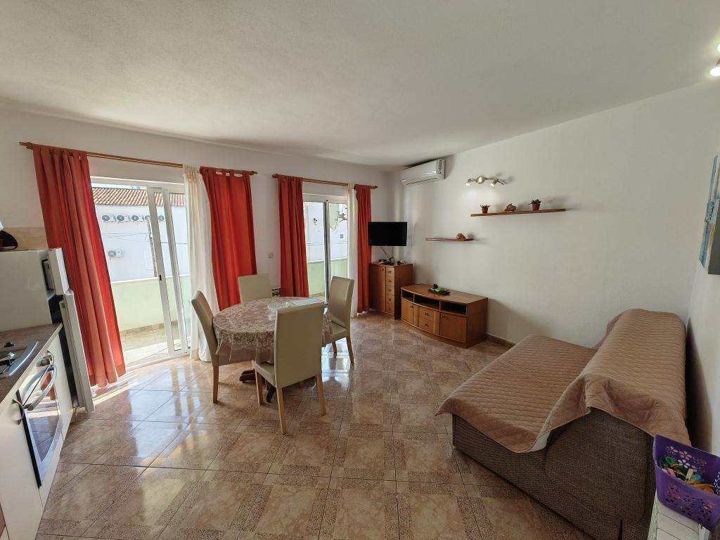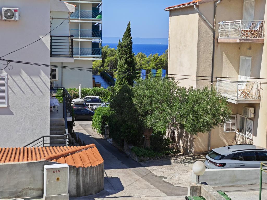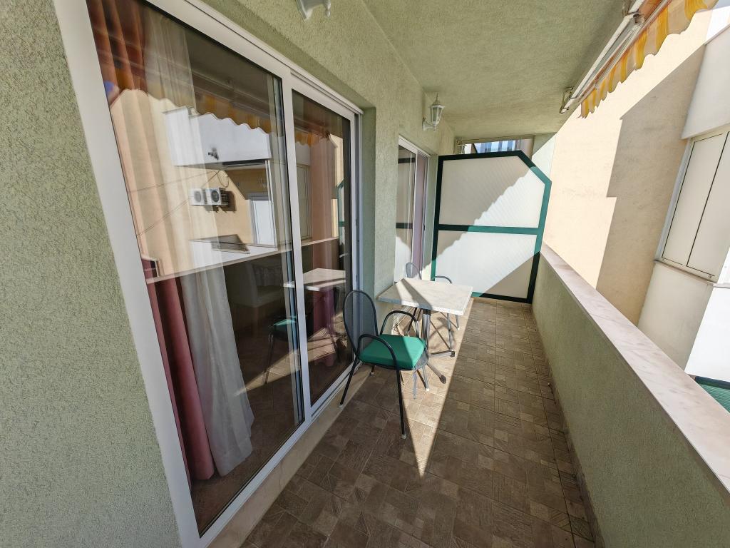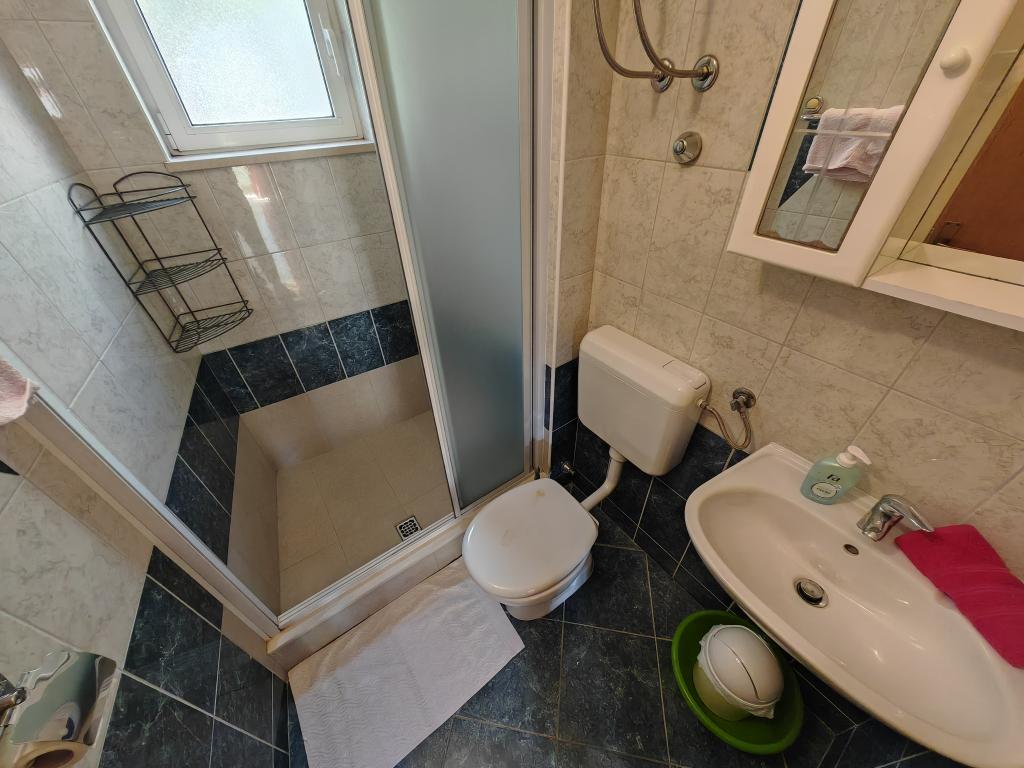 Apartma v prvem nadstropju apartmajske hiše v neposredni bližini plaže, oddaljen približno 50 metrov. Velik balkon s pogledom na morje, brezplačen wi-fi, brezplačno parkirno mesto pred stavbo. Apartma je primeren za 3 odrasle osebe, par z enim ali dvema majhnima otrokoma. Odlična lokacija, dobro opremljeno in urejeno.