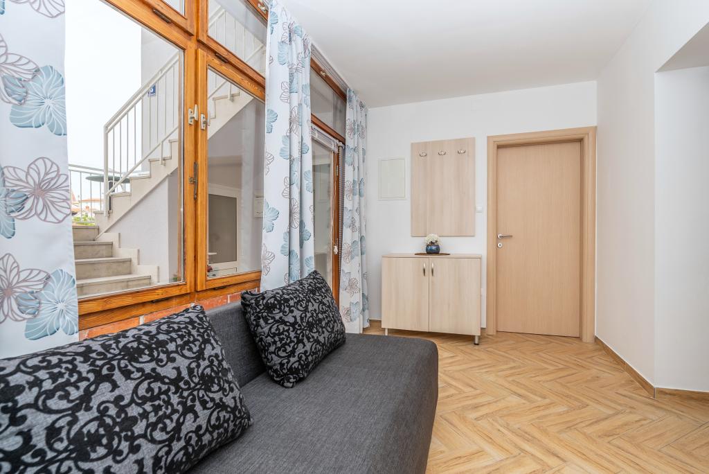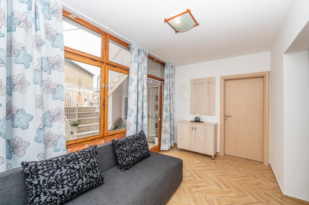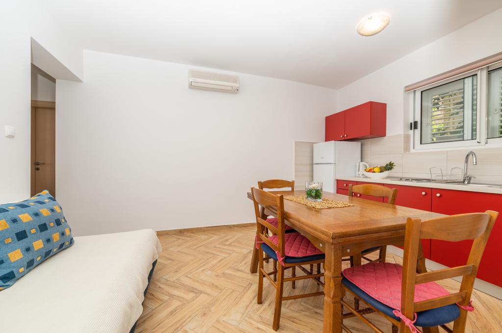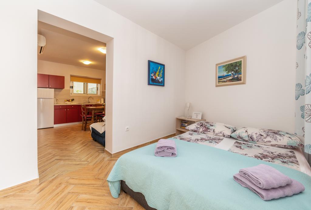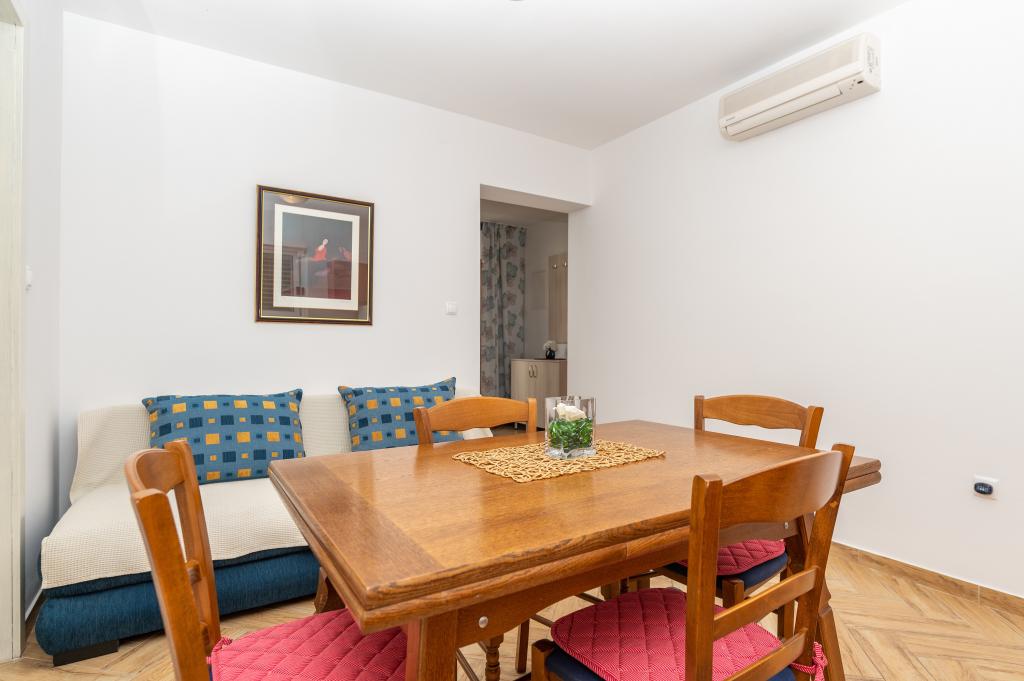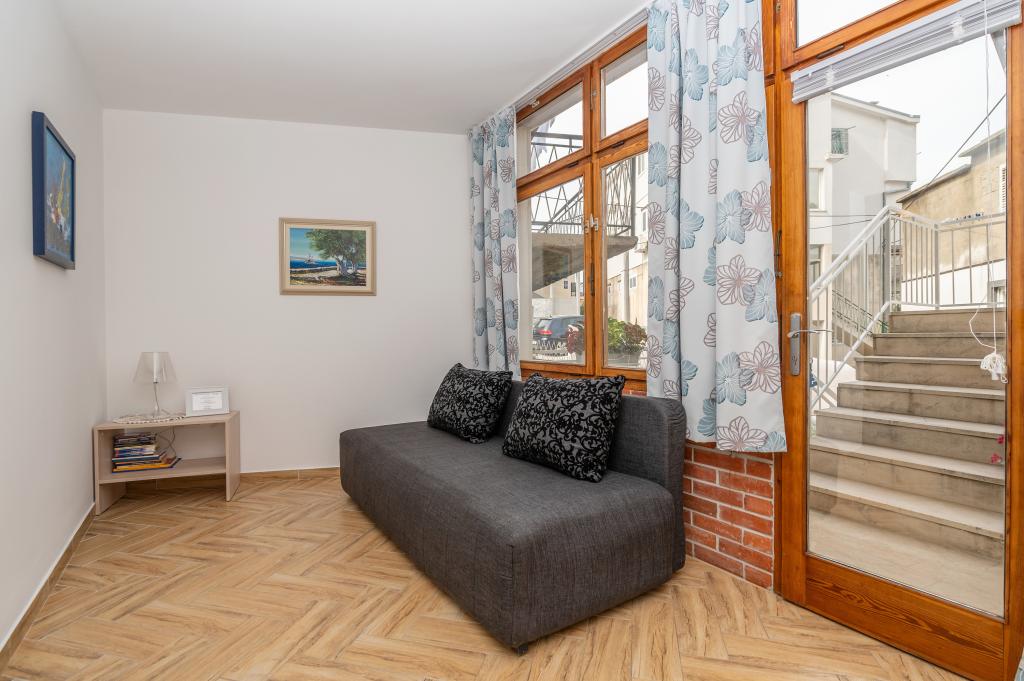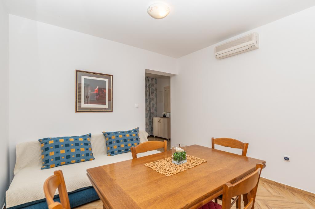Lep in urejen apartma v mirnem delu centra Makarske, le minuto hoje do osrednjega trga in nato po promenadi do plaže, kar pomeni, da medtem ko bivate v našem apartmaju, ne potrebujete avtomobila , saj vse lahko obhodiš peš. Stanovanje ima sobo, kuhinjo, kopalnico in dnevno sobo. Vse sobe so klimatizirane. Parkirišče je vključeno v ceno.