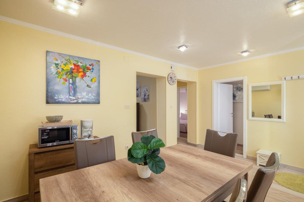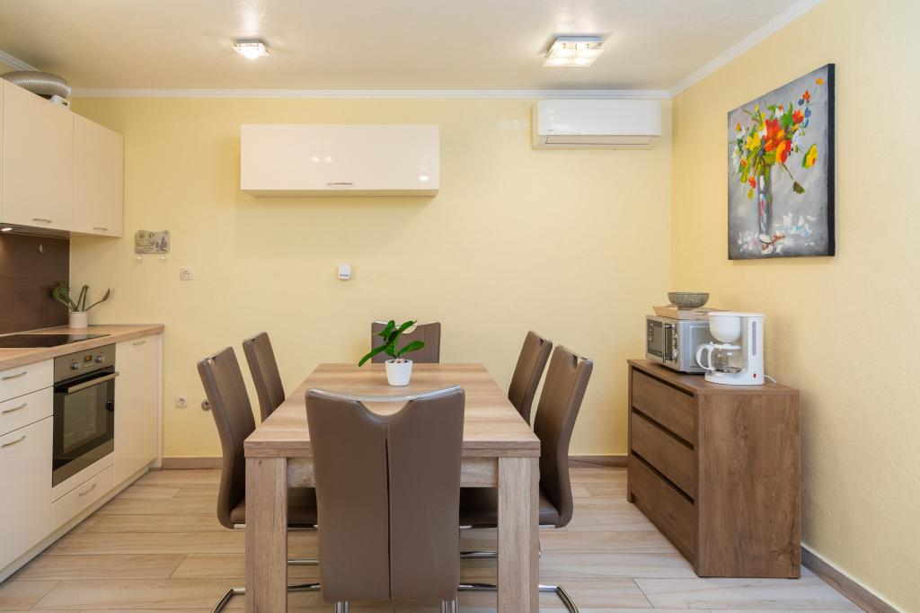Dobrodošli v apartmaju Perla. Samo 200 metrov od plaže Makarska in 700 metrov od plaže Ratac. Apartma ob plaži ponuja dostop do prostorne terase in brezplačen WiFi v vseh prostorih. Namestitev je namenjena nekadilcem in vključuje fitnes. Apartma je sestavljen iz dveh prostornih spalnic, dveh sodobnih kopalnic, popolnoma opremljene kuhinje, jedilnice in dnevne sobe s televizijo z ravnim zaslonom in storitvami pretakanja. Gostje lahko uživajo na terasi s čudovitim pogledom na gore. Enota je klimatizirana, opremljena s tušem, garderobno omaro, zasebnim vhodom in zvočno izolacijo za dodatno zasebnost. Za družine z otroki je poskrbljeno z varnostno ograjo za dojenčke, ki omogoča udobno in varno bivanje. Priljubljene znamenitosti v bližini apartmaja vključujejo cerkev sv. Petra, glavne avtobusne postaje Makarska in promenade Riva. Najbližje letališče je letališče Brač, 33 km stran.