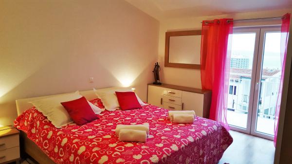 Moderni in popolnoma opremljeno stanovanje v najbolj privlačen del Makarske. Objekt se nahaja 5 minut hoje do plaže in sprehajališče, polno različnih naprav, kot so bari, restavracije, trgovine s spominki in tako naprej. V isti hiši, kjer je stanovanje lekarna in supermarket. Blizu od 10 do 20 m, so tiho kavarne, pekarne, zdravnika, pediatra, bankomat, trafika in trgovine. Stanovanje sestoji iz kuhinje, dnevna soba, tri spalnice, tri kopalnice, velika terasa in balkon. Stanovanje ima čudovit pogled na morje, otoke, centra mesta in pobočju gore. Apartma je opremljen s klimatsko napravo, ki je malo v stanovanju, pomivalni stroj, pralni stroj, televizijo z ravnim zaslonom TV, free WIFI, v mikrovalovni pečici. Gostje imajo dostop do perila in brisač in drugo po dogovoru.
