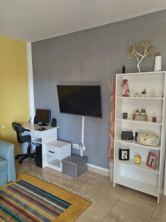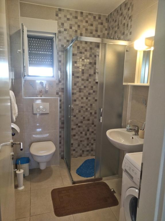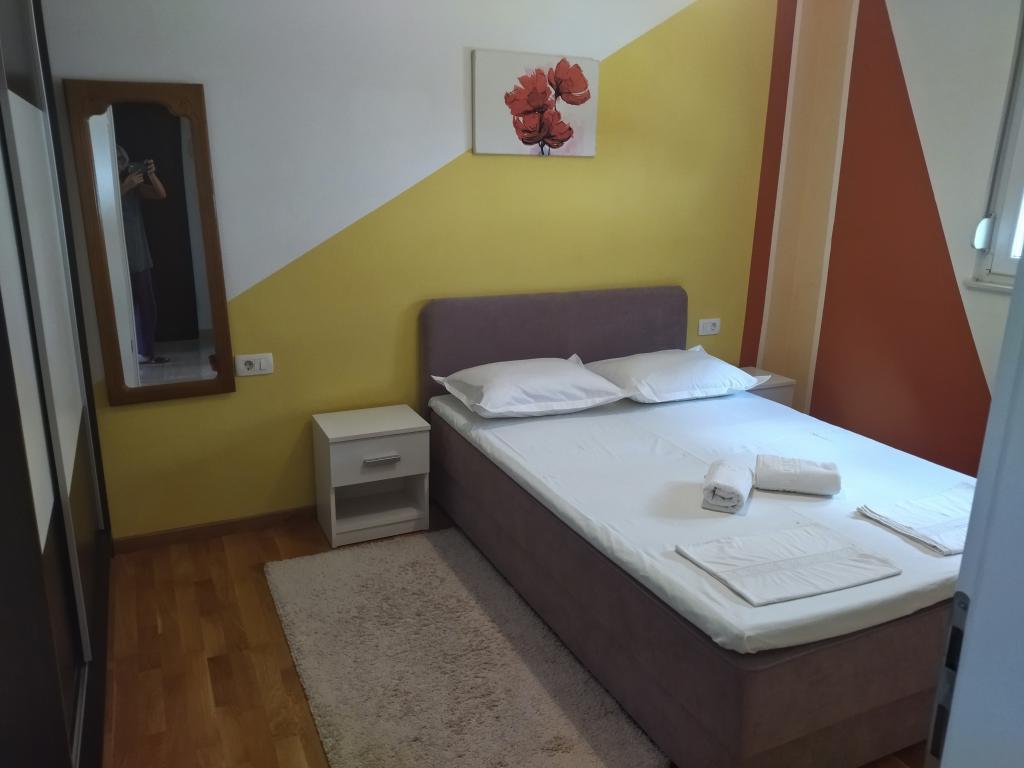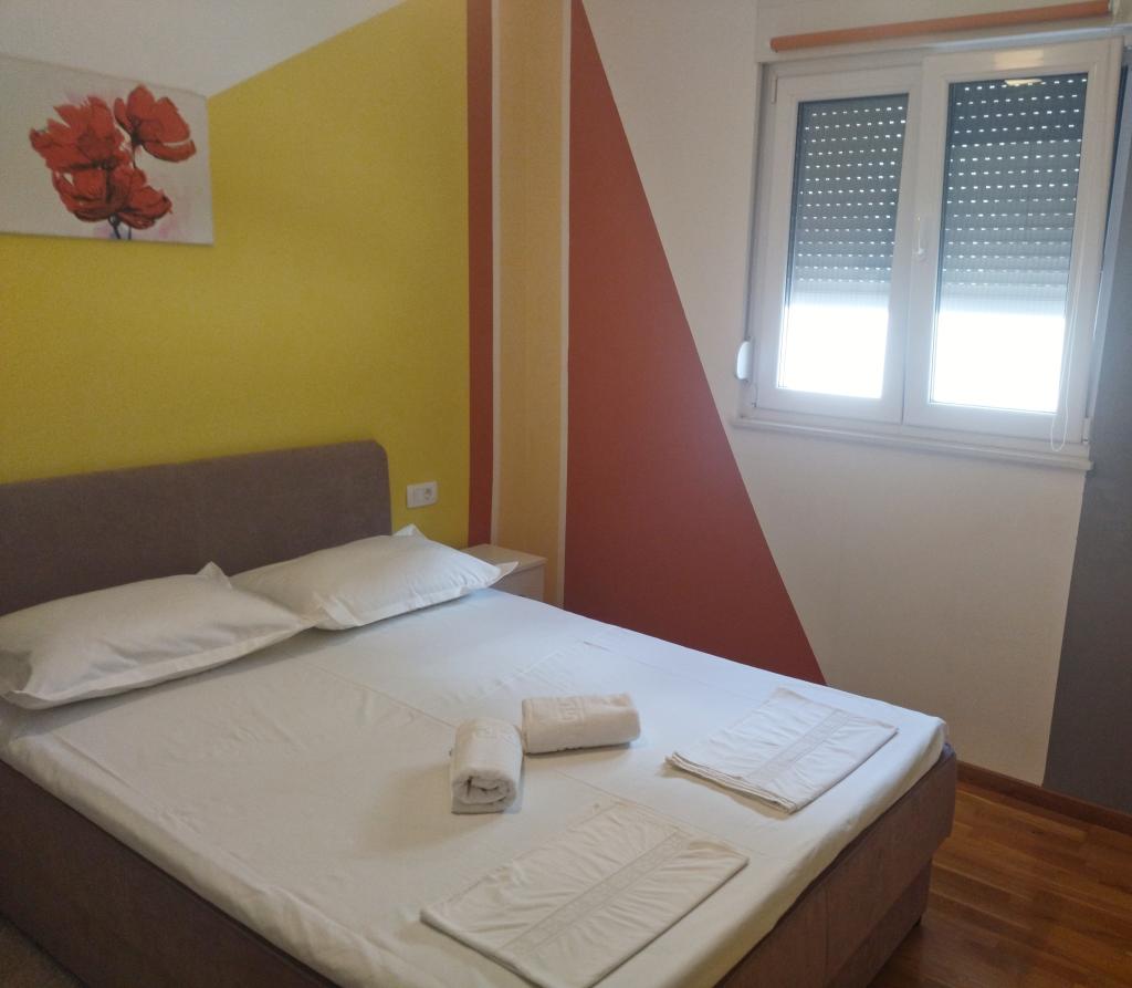 Apartma A2 je sodoben in prostoren apartma in odlična izbira za tiste, ki potujete v dvoje. Vsebuje dvoposteljno sobo s prenosnim ventilatorjem in komarnikom na oknu ter likalnikom in likalno desko, dnevno sobo s klimo in pisalno mizo z računalnikom (računalnik je povezan s TV s kablom HDMI2), jedilnico, veliko in dobro opremljeno kuhinjo (hladilnik z zamrzovalnikom, pomivalni stroj, štedilnik in pečica, kuhalnik vode), kopalnico s prho in mrežo proti komarjem na oknu, pralni stroj in sušilec za lase, velik balkon, brezplačen Wi-Fi in brezplačno parkiranje v sklopu stavbe.