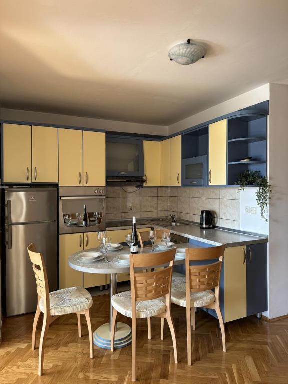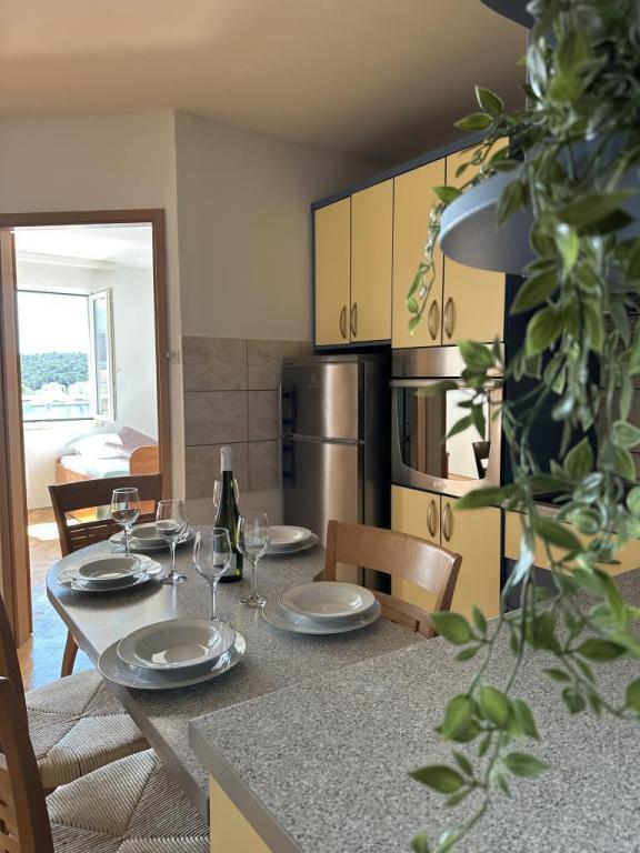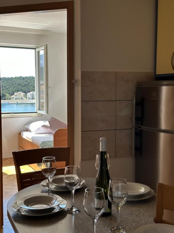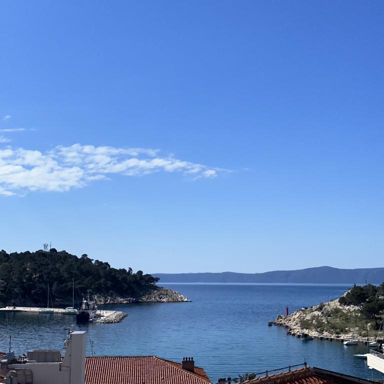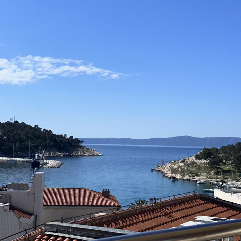 Apartma Sarita se nahaja v samem centru mesta, druga vrsta od morja in rive, s čudovitim panoramskim pogledom na morje, mesto in goro Biokovo. V bližini so pošta, banka, restavracija, kavarna, trajektno pristanišče je 20 m oddaljeno od apartmaja. Apartma se nahaja poleg parka in observatorija, zato so večeri mirni in tihi.