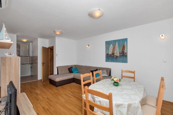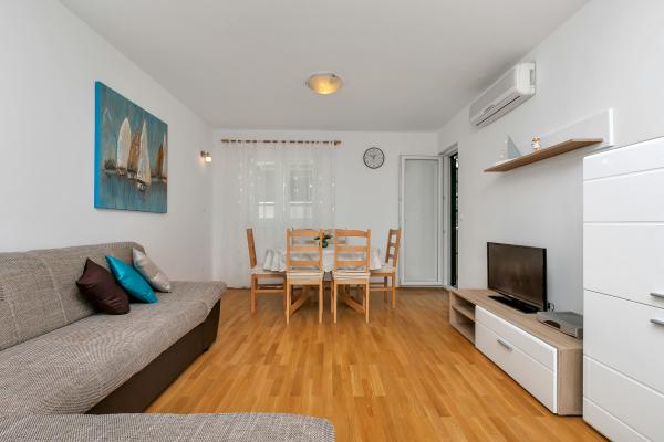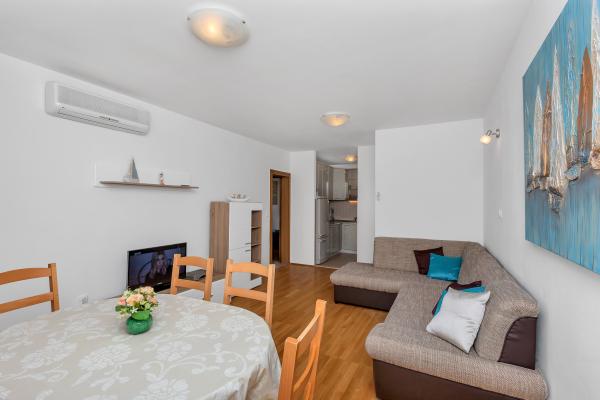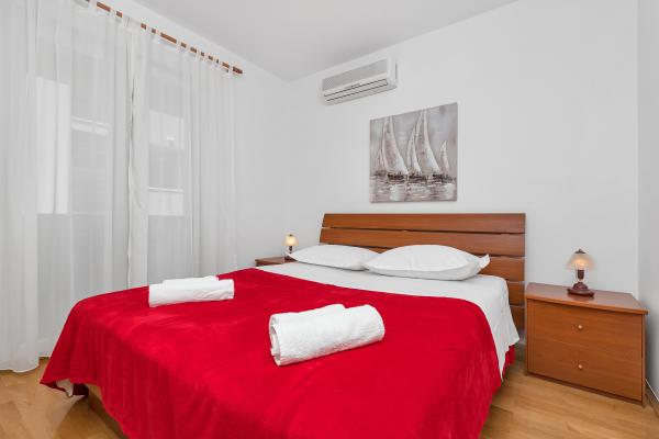 Nudimo vam udobno in moderno opremljeno stanovanje v centru Makarske, oddaljeno od plaže samo 50m. Apartma je sestavljen iz dveh spalnic, kopalnice, kuhinje, dnevne sobe in balkona. Vse sobe so klimatizirane, TV, brezplačen internet. Parkiranje je zavarovano. Pred hišo leži lepa, dolga plaža, obdana z borovci. V bližini so restavracije, otroško igrišče, lekarna, trgovine ... Rezervacije zahtevajo 20% predplačila. Za vsa vprašanja sem vam na voljo. S spoštovanjem, Katarina Birgmajer