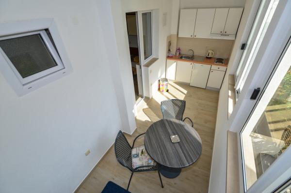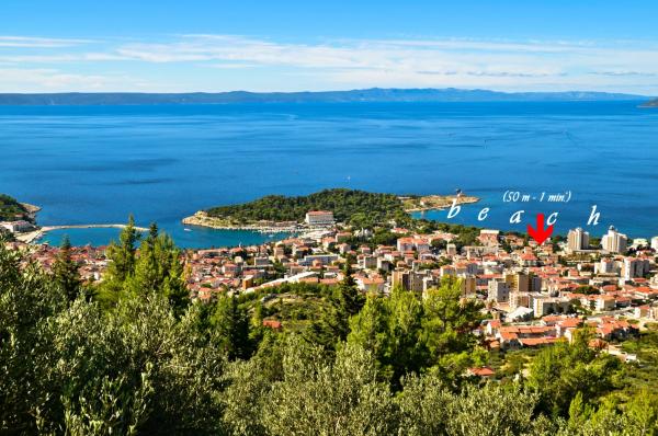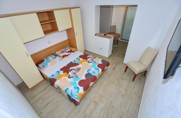 Apartmaji Dina so le minuto hoje do plaže, v mirni ulici, brez hrupa. Za mesto center traja manj kot 5 minut hoje, v bližini je vse, kar potrebujete, trgovine, restavracije, disco, plaža ...