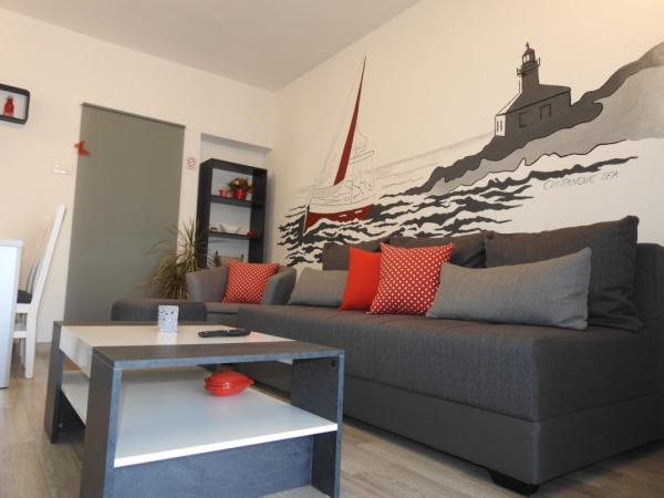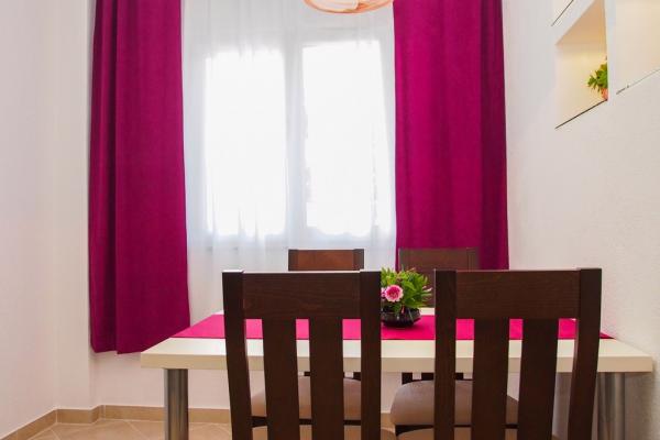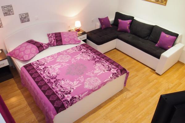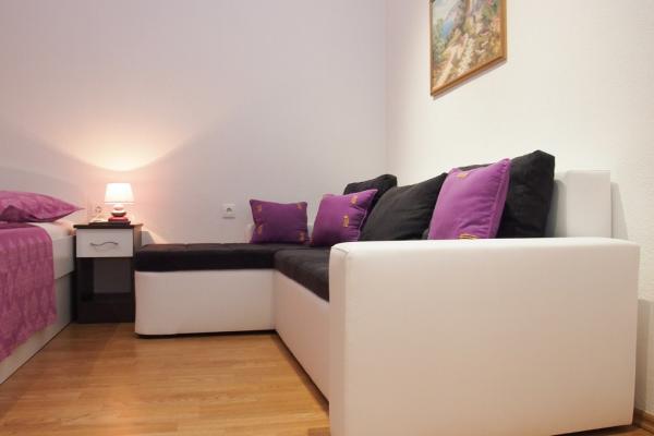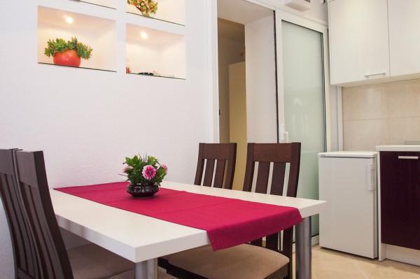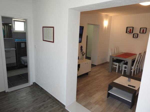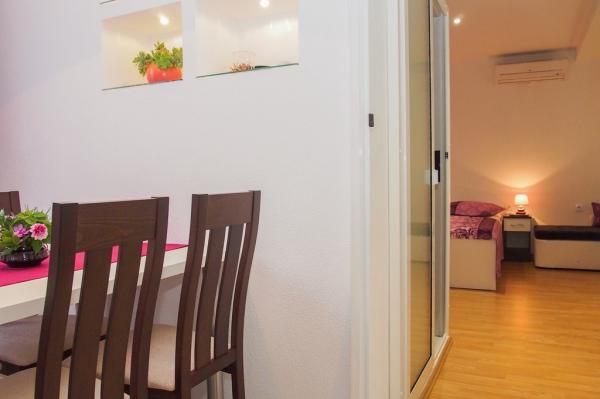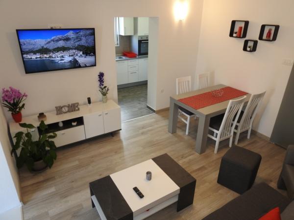 Apartmaji se nahajajo v mirnem delu Makarske, 300m od centra. Ima teraso, parkirišče, klimatsko napravo in TV. Na voljo je tudi žar na prostem. Posteljnina, brisače in končno čiščenje so vključene v ceno.