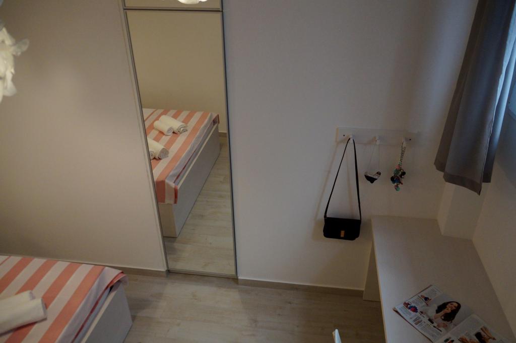 Apartmaji Frapedo so le 300 metrov od morja in rive ter centra mesta. V bližini supermarketa je Lidl (200m), zdravstveni dom 100m, muzej školjk 100m, nasproti apartmaja je športni center z nogometnimi igrišči, tenisom, atletiko, košarko, telovadnico, notranjim bazenom, telovadnico. 3 minute hoje brez vzpona morate priti do mestne obale, prvih kavarn in restavracij ali do središča mesta. Glavna mestna plaža je na drugi strani mestne obale in je 10 minut hoje, najbližja plaža ob hotelu Osejava pa je oddaljena 250 m. Pred hišo je parkirišče za vaše vozilo, poleg vsakega stanovanja pa sedežna garnitura. Apartmaji so popolnoma novi in opremljeni z vso potrebno opremo za udobno bivanje v njih. Dolgoletna turistična tradicija naše družine je zanesljivo zagotovilo, da bo vaše bivanje v naših apartmajih prijetno doživetje