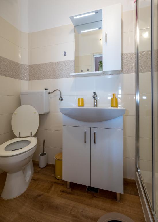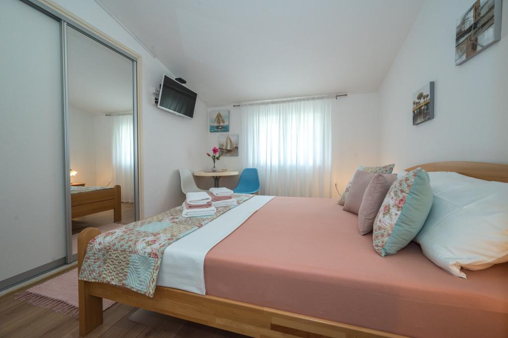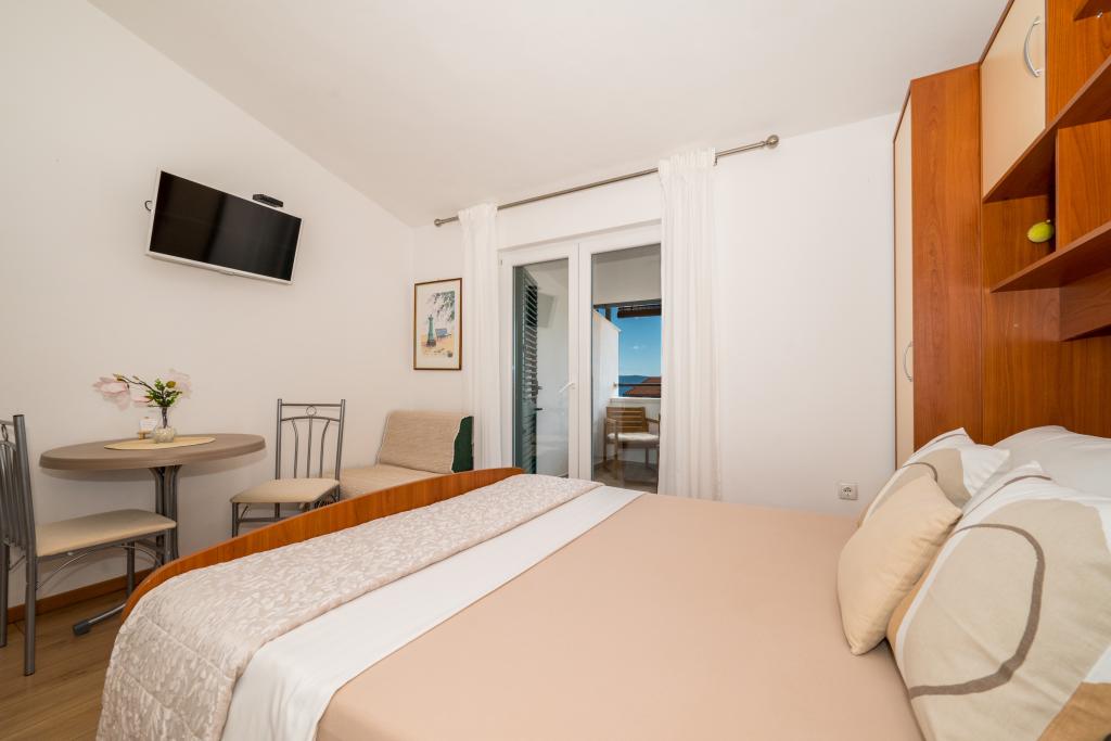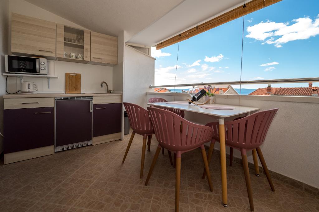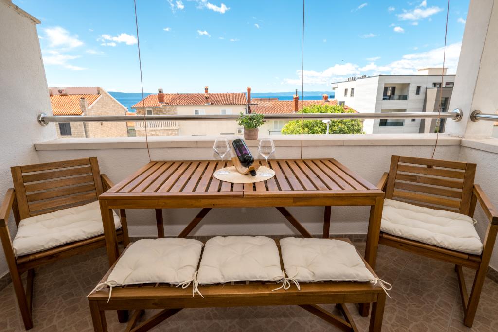 Sobe so urejene, moderne, dobro opremljene in se nahajajo v drugem nadstropju družinske hiše, pred katero je dvorišče za parkiranje avtomobilov gostov. Hiša se nahaja v čudovitem, zelo turističnem delu Makarske, približno 90 m od mestne plaže, v 200 m od katere pa se nahaja 8 hotelov. Gostitelj ima dolgoletne izkušnje v turistični industriji. Na razdalji 500 m od hiše se nahaja teniški center in vodni park, na 800 m glavni mestni park s športnimi in rekreacijskimi objekti, na 1000 m pa začetek mestnega središča. Na 100 m je potapljaški center, na enaki razdalji pa je hotel Biokovka, ki ponuja notranje bazene, savne, telovadnice, fizioterapijo in masaže. Med bližnjimi znamenitostmi so Muzej školjk v mestu, Naravni park Biokovo z znamenito potjo Skywalk, Rdeče in Modro jezero v Imotskem ter izleti s turističnimi ladjami na otok in v mesto Korčula ter znana plaža Zlatni rat na otoku Brač.