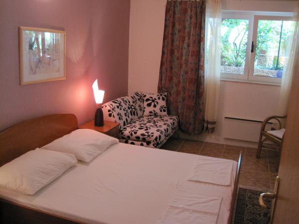Prelep apartma v pritličju. Lastnika zelo prijazna. Zelo opremljen apartma, ničesar nismo pogrešali. Čistoča odlična. Človek se počuti kot doma. Gospa ima prekrasen vrt ki daje senco apartmaju, klime skoraj ne potrebujete.