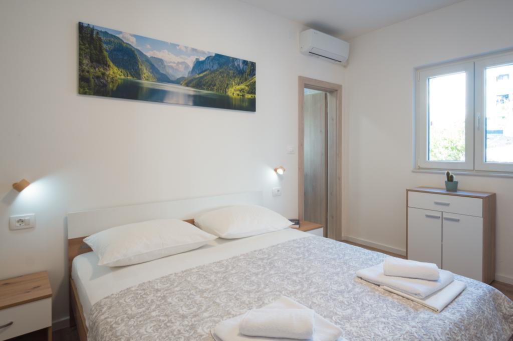 Apartmaji Maslina ponujajo moderno opremljene in prostorne apartmaje v mirnem delu Makarske, idealne za pare, družine in manjše skupine. Namestitev se nahaja na mirni lokaciji, stran od mestnega vrveža, a dovolj blizu, da lahko enostavno raziščete vse, kar Makarska ponuja. Vsi apartmaji so popolnoma opremljeni – kuhinja, klimatska naprava, brezplačen brezžični internet – na voljo pa je tudi zasebno parkirišče. Ponujamo več enot, zato se lahko enostavno prilagodimo vašim potrebam. Če iščete udoben oddih z dobrimi povezavami do plaže in centra, vendar brez hrupa in gneče – so apartmaji Maslina prava izbira za vas!