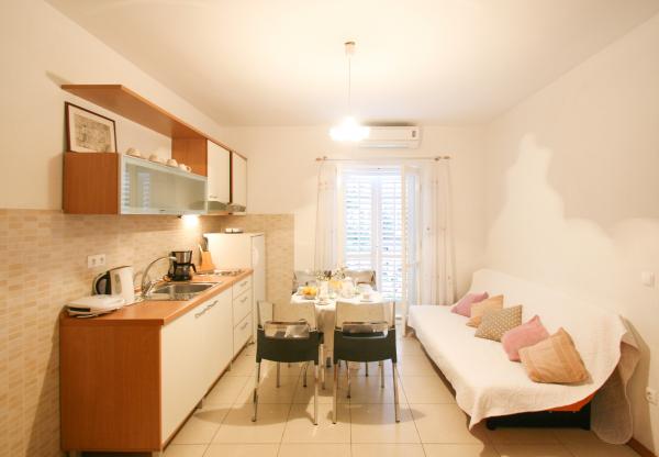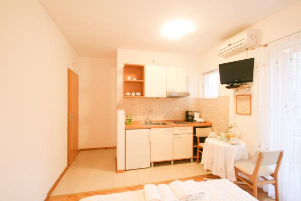 Družinska hiša z apartmaji se nahaja v mirnem stanovanjskem območju Makarske, v bližini peščene plaže in hotela Dalmacije in BIOKOVKA. Oddaljenost od centra mesta je 10 min sprehode ob morju.