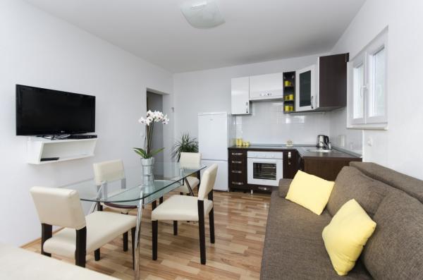 Ta namestitev je idealna in fantastično! To je stanovanje, ki je v celoti opremljen, čisto, moderno opremljeno s klimatsko napravo. To je zelo udobno. Obstajata dve kopalnici, 2 balkona s čudovitim pogledom na morje. To je dobil vse, kar potrebujete današnjih ljudi. Apartma se nahaja 10 minut hoje od plaže, 2 minut od trga in marine. Servis je odlična! Goran in Tanja sta zelo inteligenten, ustrežljivi, prijazni in prijazni ljudje, seveda tudi njegovi starši. So lahko pomagali in svetovali v vsaki situaciji. Radi bi, da jim rečemo jim najlepša hvala! To je idealen kraj za bivanje za počitnice. Mi bi radi, da pridejo nazaj.