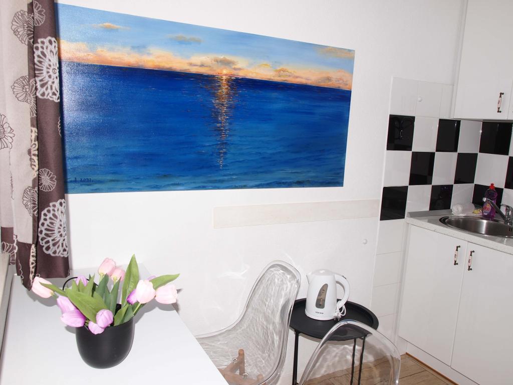 Na tem mestu je vse s 5 zvezdicami. Čisto, svetlo, lesena tla, kopalnica, brisače, klima, čeprav smo junija zdržali brez nje, saj stanovanje ni pregreto. Mirno mesto ponoči, čeprav je do vseh zabav dostopno peš. Velik supermarket je oddaljen 3 minute lepega sprehoda in je zelo priročen. Posebno pozornost si zaslužijo gostitelji. Topli, prijetni, tam so za vas, če jih potrebujete, vendar si ne morem predstavljati, da bi jih morda potrebovali, razen če se želite samo pogovarjati. Za tiste, ki so prvič v Makarski, je kraj zelo primeren za sprehode do oddaljenih lepih plaž in v drugo smer - do centra mesta. Ste ravno v sredini!
