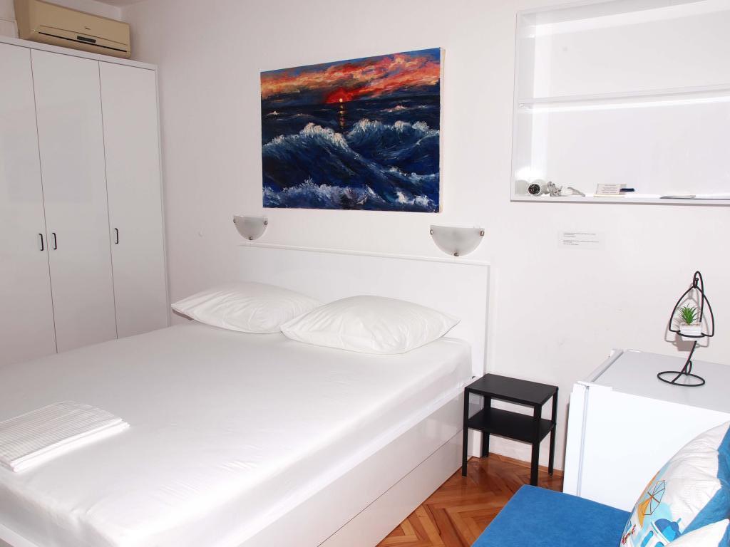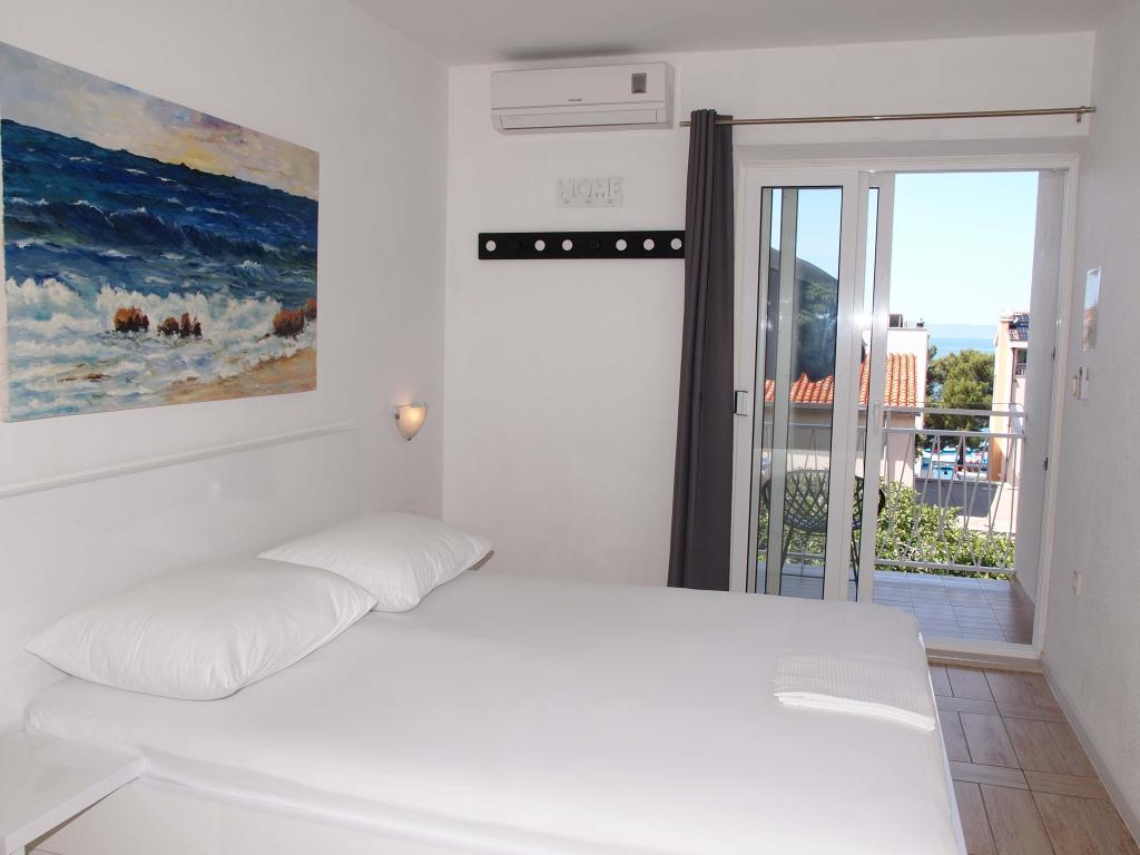 Novi in moderno opremljeni apartmaji s pogledom na morje se nahajajo v najmirnejšem in najprivlačnejšem delu Makarske med hotelom Places-Dalmacija in hotelom Biokovka. Oddaljenost od morja in peščene plaže je 50 m. Čudovita promenada, obdana z borovci, vas v 10 minutah pripelje do centra mesta. Ob promenadi se nahajajo številne restavracije in zanimivi objekti. Gostom so na voljo 4 namestitvene enote. Dva enaka studia v 1. nadstropju in dva enaka apartmaja v 2. nadstropju družinske hiše. V apartmaju je možnost dodatnega ležišča za otroka. Vse namestitvene enote imajo balkone. V vseh namestitvenih enotah so kuhinje ločene od spalnega dela. Apartmaji imajo lastne zunanje vhode, ki omogočajo popolno zasebnost. Namestitvene enote niso izpostavljene ulici in gostom zagotavljajo mir pred uličnim hrupom. Cena vključuje parkiranje, internet, klimatsko napravo in turistično takso.