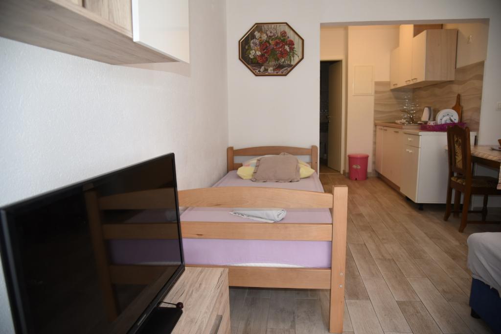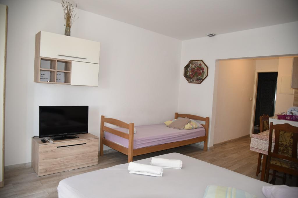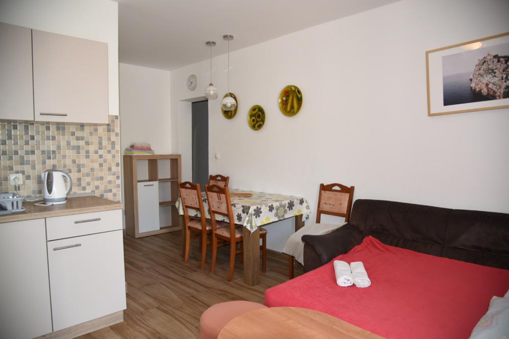 Apartmaji Pomalo vam nudijo prijetno bivanje. Poleg studio apartmajev in popolnoma opremljenih sob imajo vsi gostje možnost uporabe zasebne garaže, terase s fontano in žara, kjer se lahko zabavate pozno v noč. Lahko spečete ribe na žaru, se osvežite s hladnim pivom in nato obiščete center mesta, ki je v bližini naše nastanitve.
