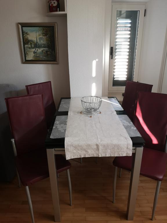 Apartma se nahaja v samem centru mesta na Kačićevem trgu in prelepi makarski rivi s pogledom na morje, ki je oddaljeno 10 metrov. V radiju sto metrov boste našli vse, kar potrebujete za brezskrbne in prijetne počitnice: trgovine, ambulanto, restavracije. V bližini se nahajajo različni športni objekti: potapljaški center, teniška igrišča, surf center... Apartma ima poleg spalnice in kopalnice kuhinjo z vsemi aparati, veliko dnevno sobo s posteljo za dve osebi. s TV, klimo in internetom Apartma ima ločen vhod Lokacija apartmaja na prikazanem Kačićevem trgu je razvidna na spletni strani wwwapartmani-riva.com Apartma ima pogled na morje in planino Biokovo , ki dominira nad zaledjem Makarske. Vsem gostom je zagotovljeno parkiranje na javnem parkirišču.