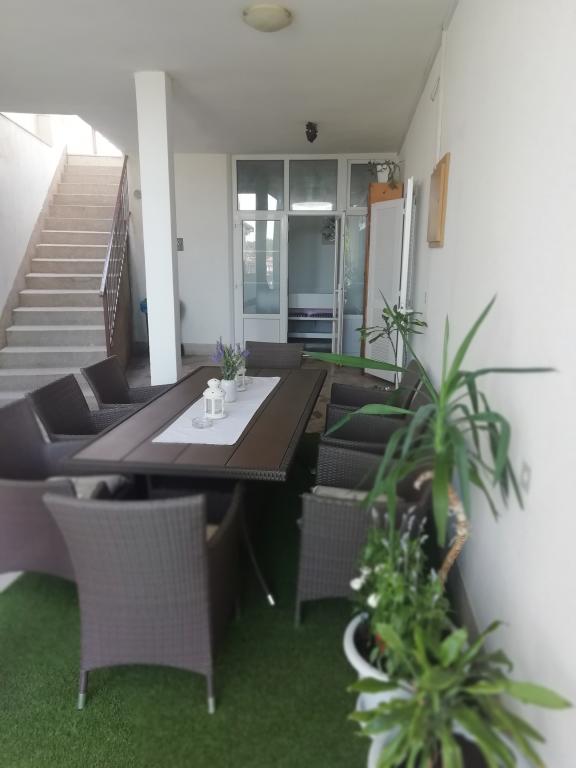 Iz namestitve smo bili popolnoma zadovoljni, lepe sobe, klimatska naprava, čiščenje v vsaki sobi in TV. Ena velika skupna kuhinja, popolnoma opremljena. Super velika sedela na veliki terasi. Apartmaji in lastniki so 100% zadovoljni. Nazadnje, darilo, ki ga sploh ni bilo. Najlepša hvala!
