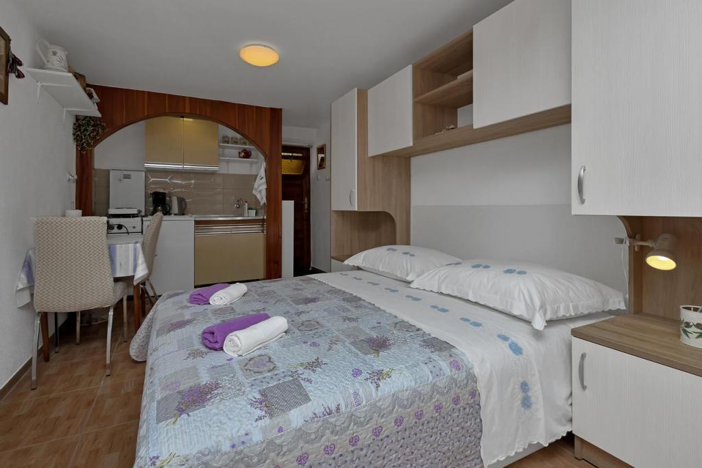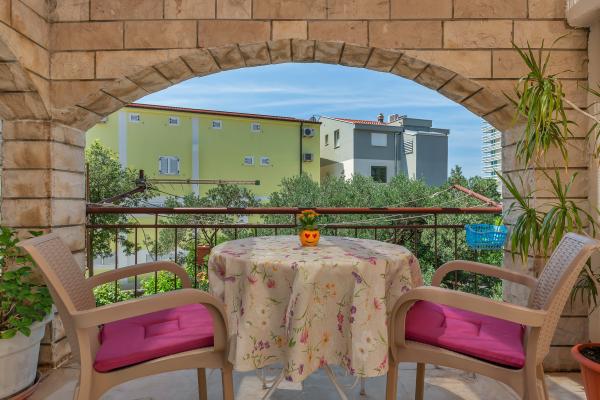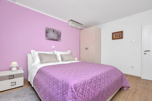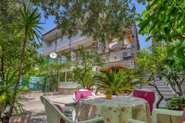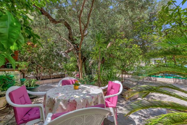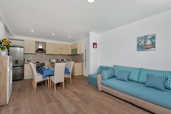 Le minuto hoje do plaže! Prvi apartma je "4+2 apartma" (ID: 58865), za 4 osebe z možnostjo dodatnega ležišča za dve osebi. Skupna površina 85 m2 z dvema spalnicama, veliko dnevno sobo s kuhinjo, dvema kopalnicama in dodatnim straniščem. Apartma ima svoj balkon s pogledom na morje. Drugi je v istem nadstropju Studio "Up!" (ID: 58866) za dve osebi z zasebno teraso za dve osebi. Tretji "3+2 apartma" (ID: 63762) velikosti 65 m2 ponuja namestitev v pritličju za do 5 oseb, četrti Studio "Olive Tree" (ID: 65589) za dve osebi pa prav tako v pritličju hiše.
