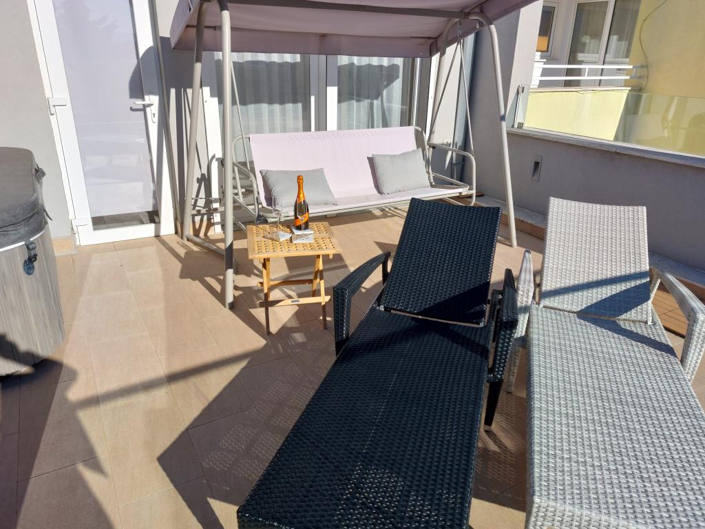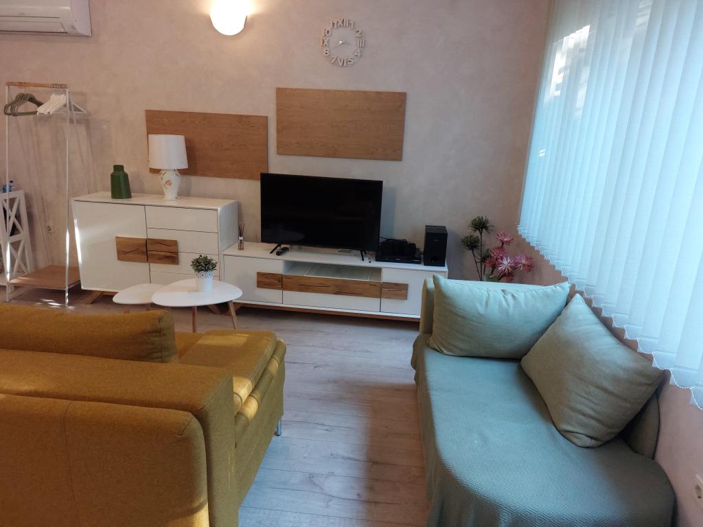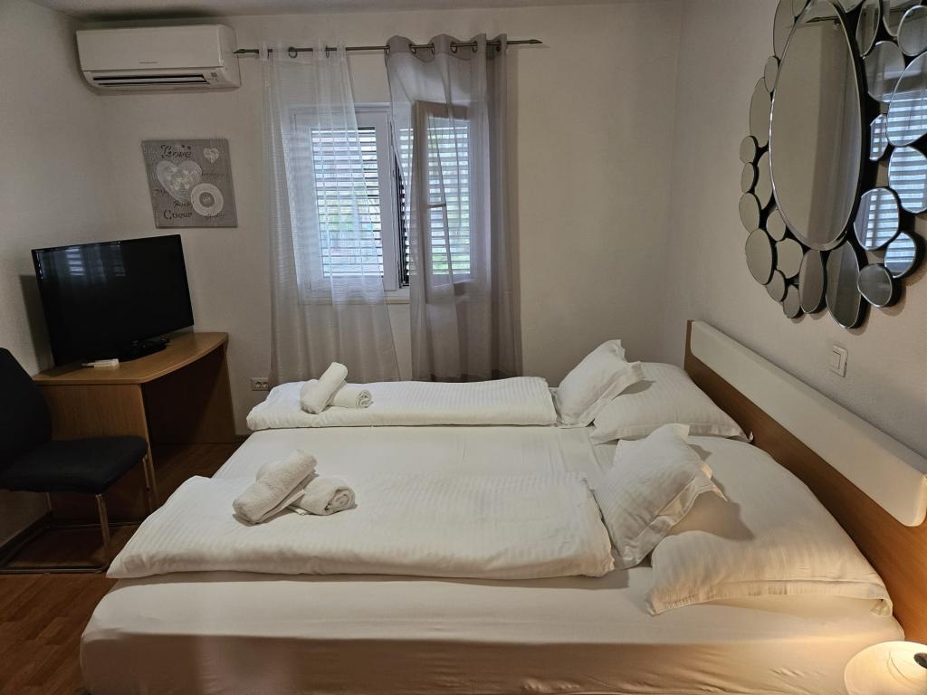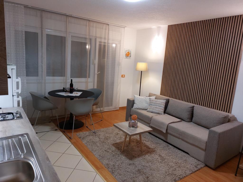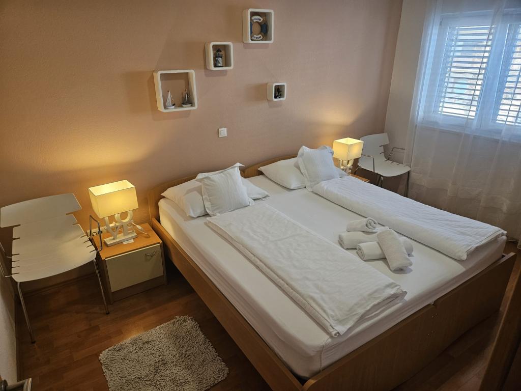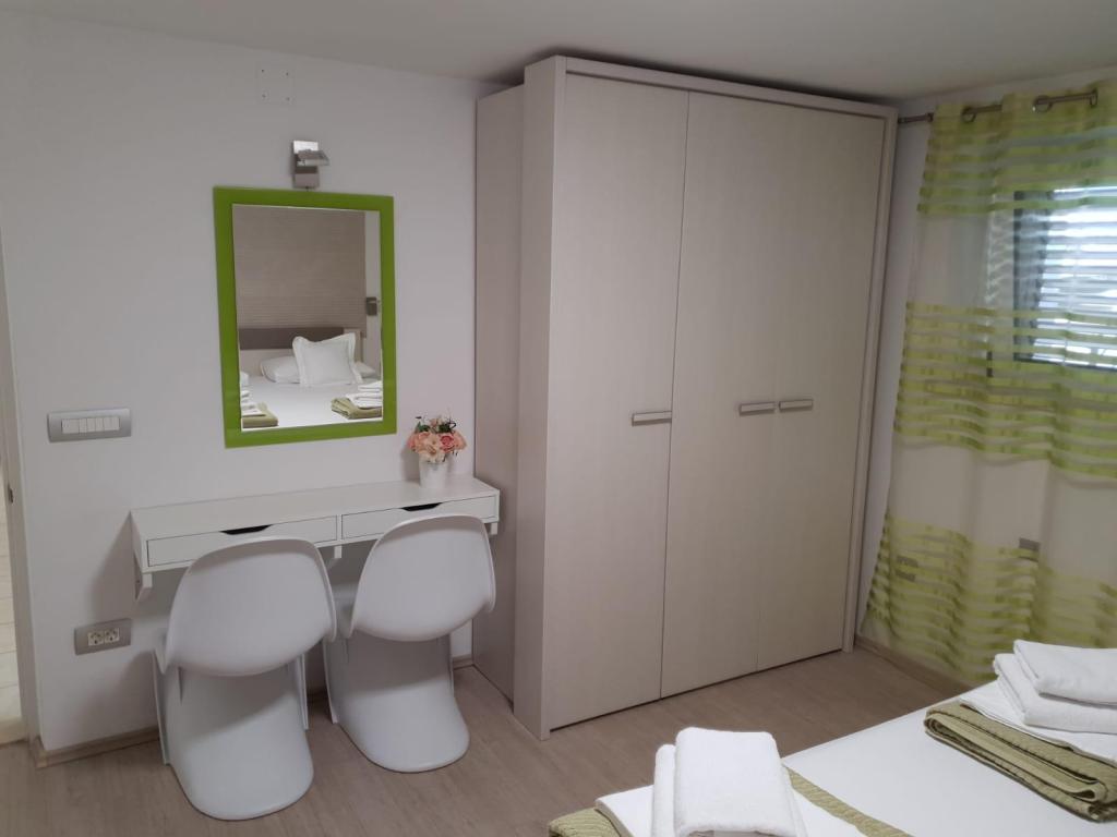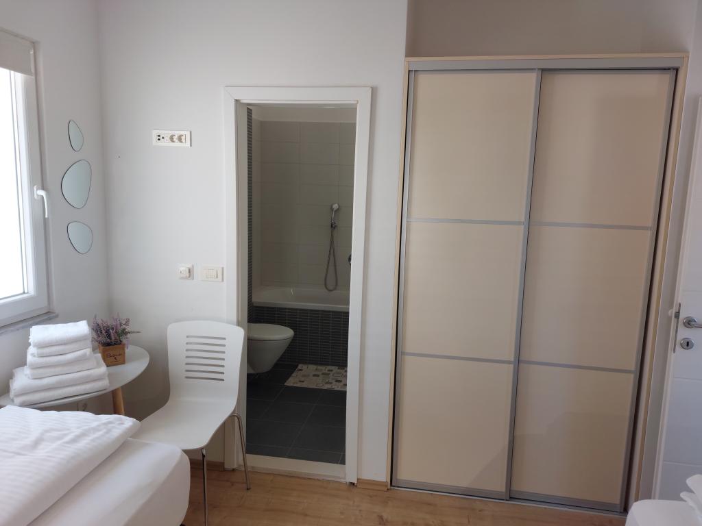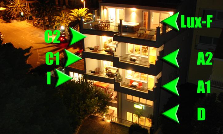 Naši apartmaji so moderno opremljeni in popolnoma opremljeni, da bo vaše bivanje čim bolj udobno in brezskrbno. Vsak apartma vključuje likalnik in likalno desko, sušilec za lase, aparat za filter kavo, grelnik vode in mikrovalovno pečico. Gostom je na voljo tudi kompleten pribor za pripravo in serviranje hrane. Vse namestitvene enote imajo televizijo z ravnim zaslonom, brezplačen brezžični internet, notranje in zunanje prostore za sedenje ter sprostitev. Namestitvene enote so klimatizirane. Parkirišče je treba rezervirati vnaprej zaradi omejenega števila parkirnih mest v objektu. Ob prihodu vas pričaka sveža posteljnina in brisače, ki se menjajo po dogovoru. Otroška posteljica je na voljo v tem objektu ob predhodni najavi in je brezplačna. V objektu je skupno dvorišče s sedežno garnituro, obdano z mediteranskim rastlinjem - idealen kraj za sprostitev. Objekt se nahaja v mirnem predelu, v drugi vrsti od morja, le 2 minuti hoje do plaže in deset minut lahkega sprehoda do centra.