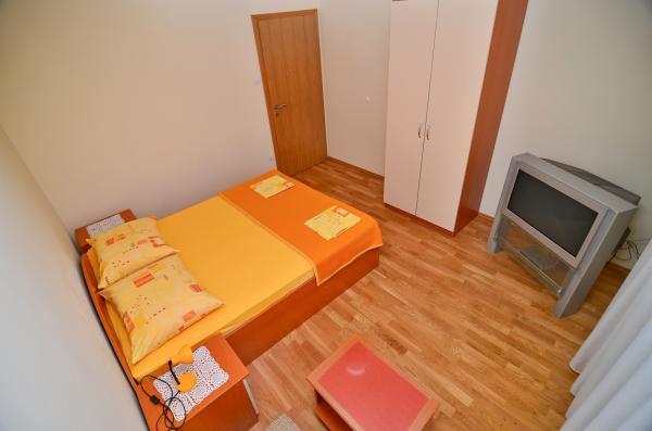 Popolnoma opremljeni in moderni apartmaji v mirnem delu mesta. Se nahaja objekt manj kot 5 minut hoje do plaže in 10 minut od centra mesta. Vsi apartmaji so prostorni in imajo ločene spalnice devnog prostor in kuhinjo. Posebej prostoren apartma za 6 oseb, ki s 3 spalnice z 2 kopalnici, velika kuhinja in velika dnevna soba in dve klimatske naprave